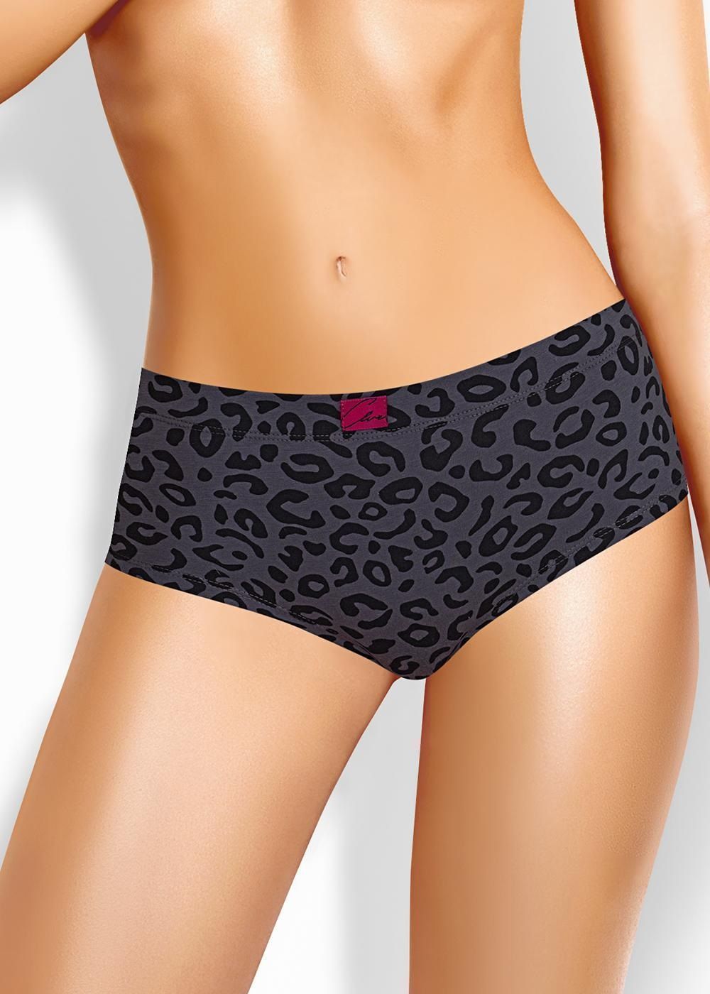 Трусы шорты женские из эластичного хлопкового полотна. Обработка краев по талии - широкая внутренняя резинка, по ноге - подгибка. По переду нашивка.