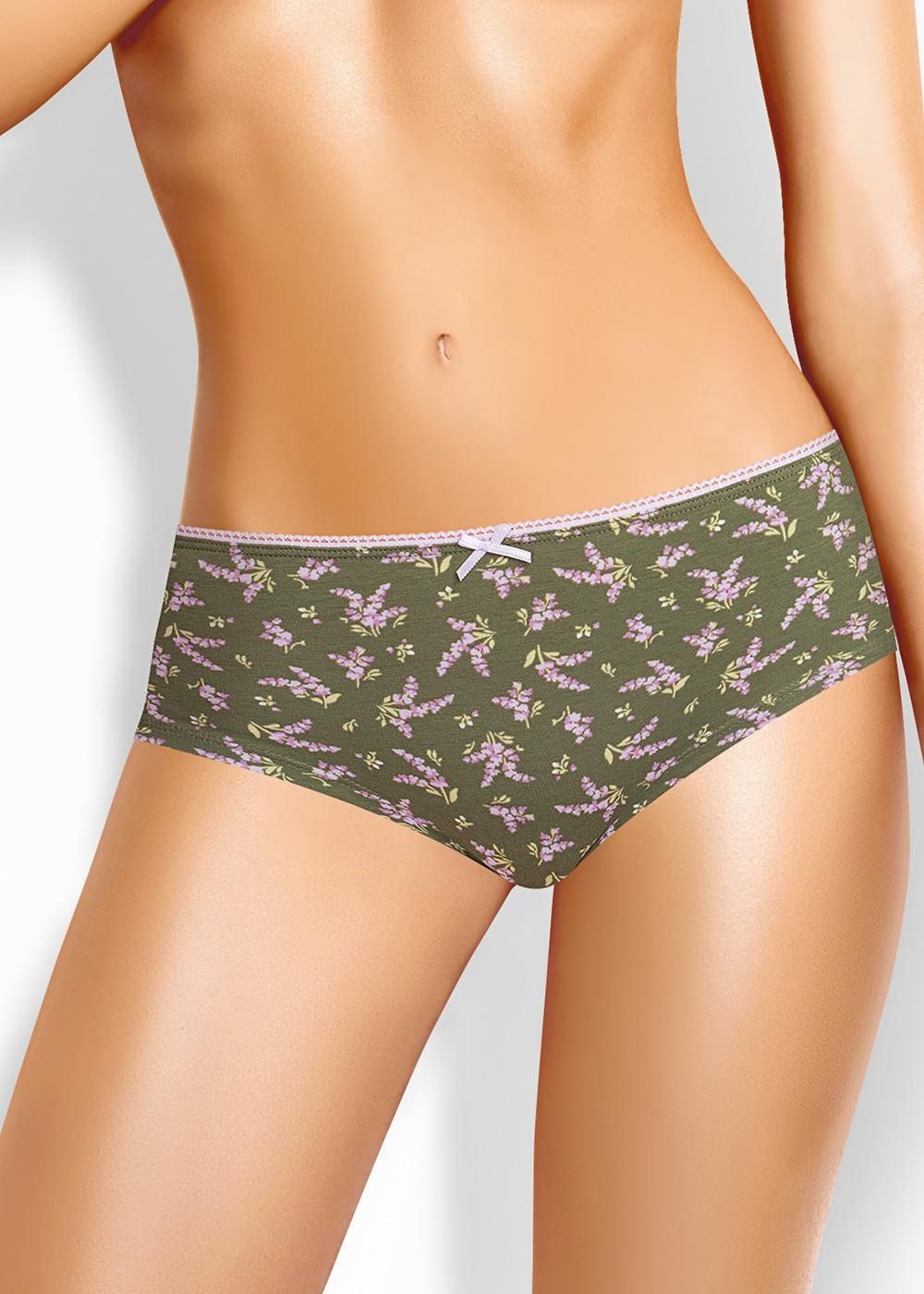 Трусы слипы женские из эластичного хлопкового полотна. Обработка краев по талии - окантовочная резинка, по ноге - полуокантовка. По переду атласный бант.