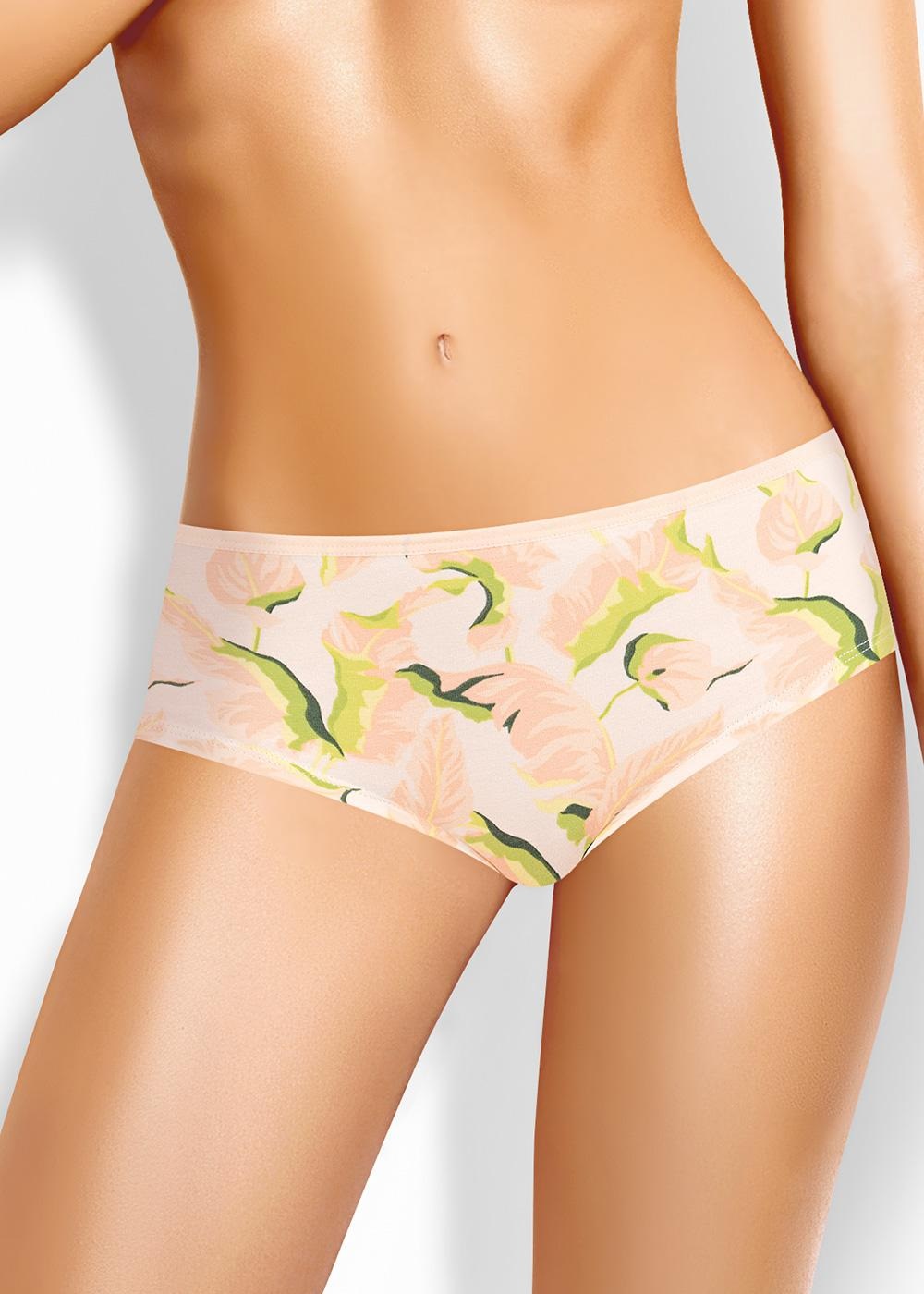 Трусы слипы женские из эластичного хлопкового полотна кашкорсе лапша. Обработка краев по талии и ноге - подгибка с внутренней резинкой. Спереди на поясе по центру жаккардовая нашивка.
