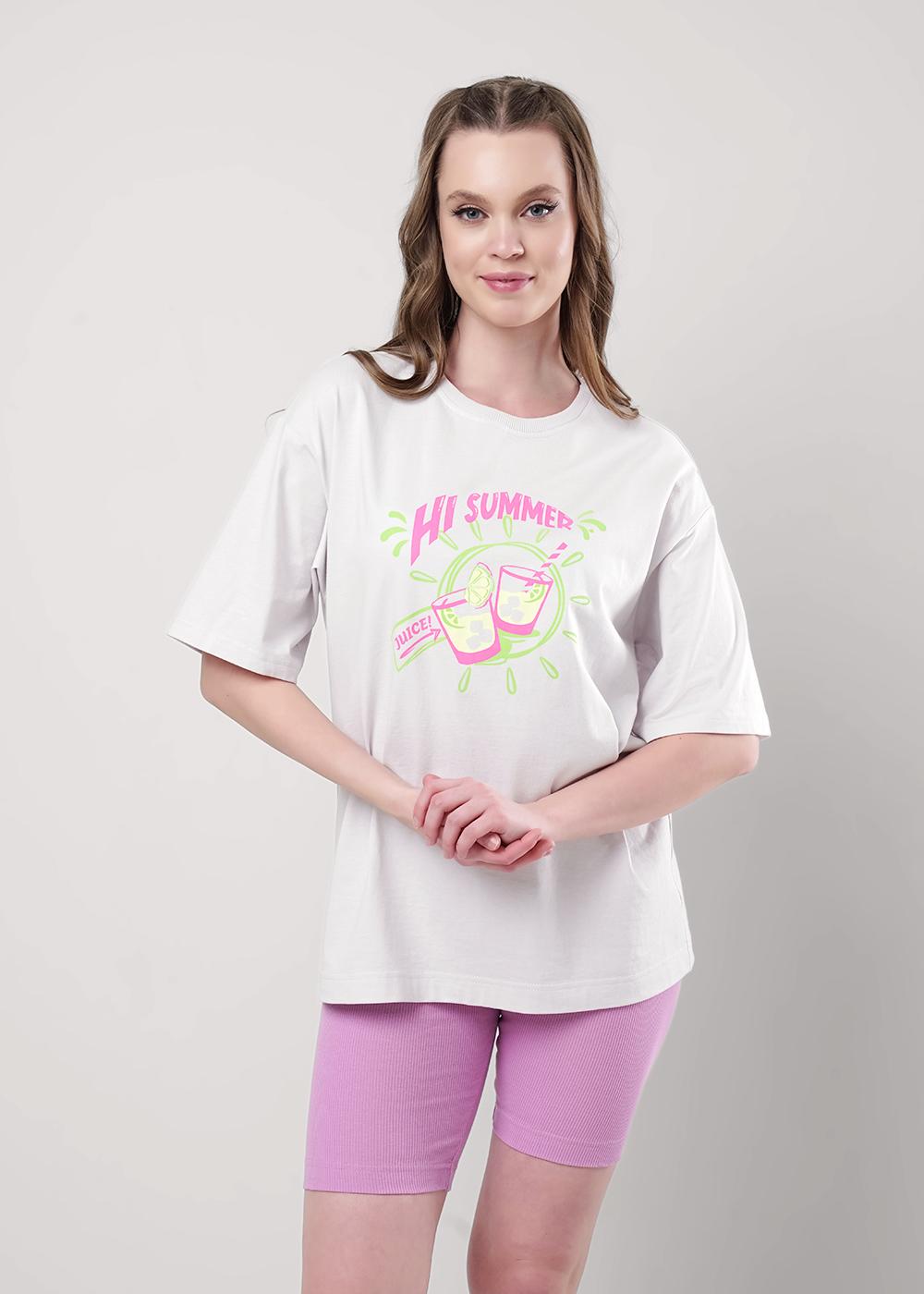 Футболка женская (оверсайз) свободного силуэта, с коротким рукавом. Горловина круглая, обработана воротником из рибаны. Горловина спинки внутри обработана бейкой из кулирки. Низ изделия и рукавов обработан швом вподгибку. На полочке принт ШЕЛКОГРАФИЯ. Надпись переводится как "Потрясающий отдых;Серфинг на Мальдивах". Модель рассчитана на рост 164-170.
