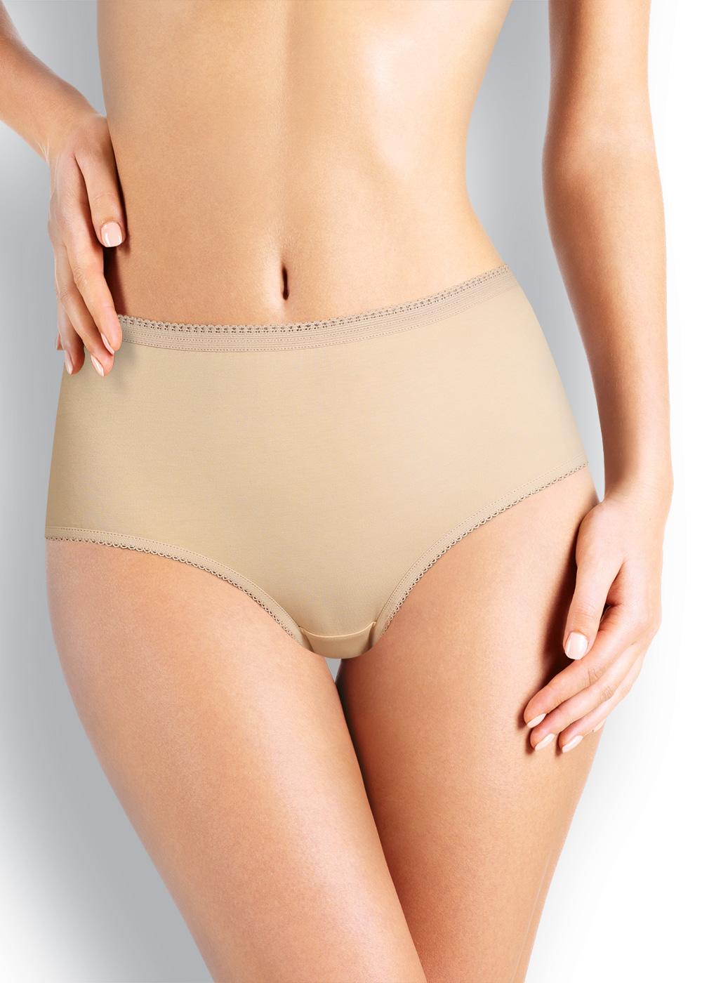 Трусы макси женские из плотного эластичного хлопкового полотна. Обработка краев - ажурная резинка с фестоном.