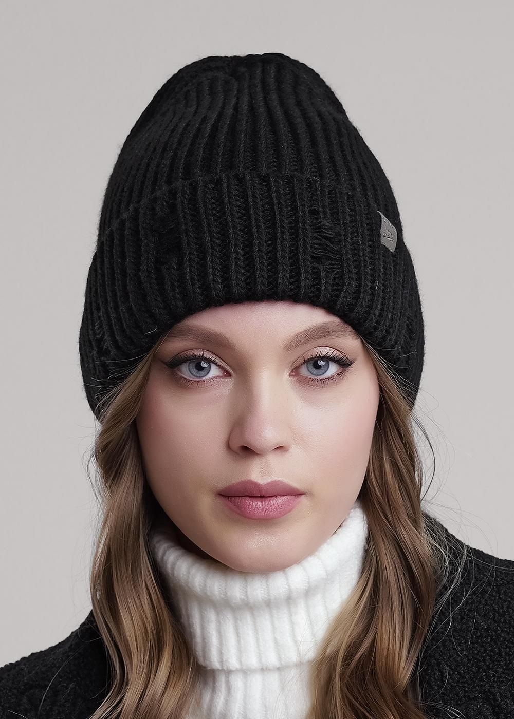 Шапка женская с отворотом, без подклада. На отвороте декорирована спущенными петлями - эффект "рваной" шапки. Модный аксессуар идеально подойдёт для холодной осени, тёплой зимы.