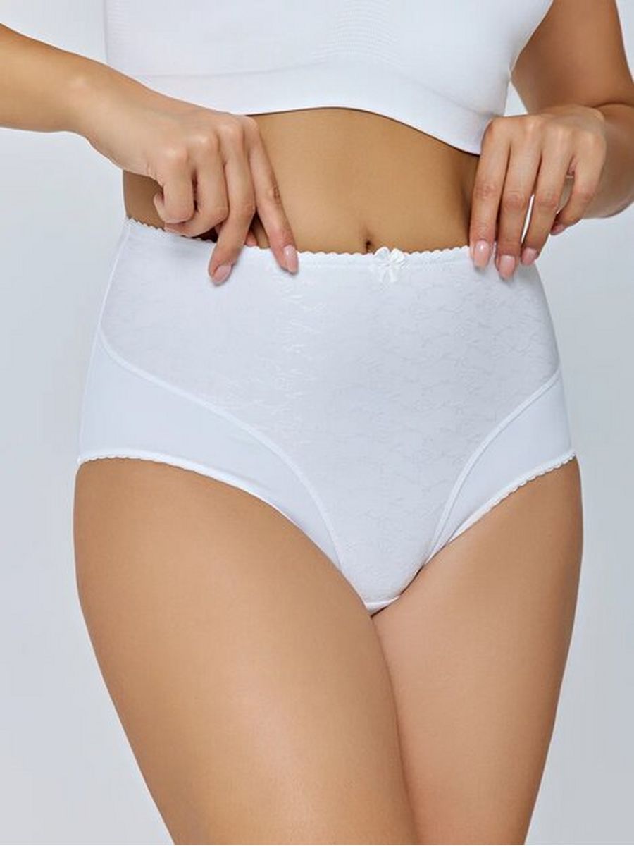 Трусы макси от бренда MADAMODA, моделирующие фигуру из высококачественного хлопка с эластаном. Декорированы кружевными вставками на передней части изделия. Трусы с высокой посадкоой, по передней части дублированы хлопковым полотном для корректирующего эффекта.