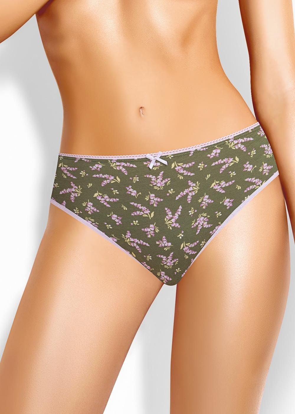 Трусы слипы женские из эластичного хлопкового полотна. Обработка краев по талии - окантовочная резинка с застилом, по ноге - полуокантовка. Спереди принт.