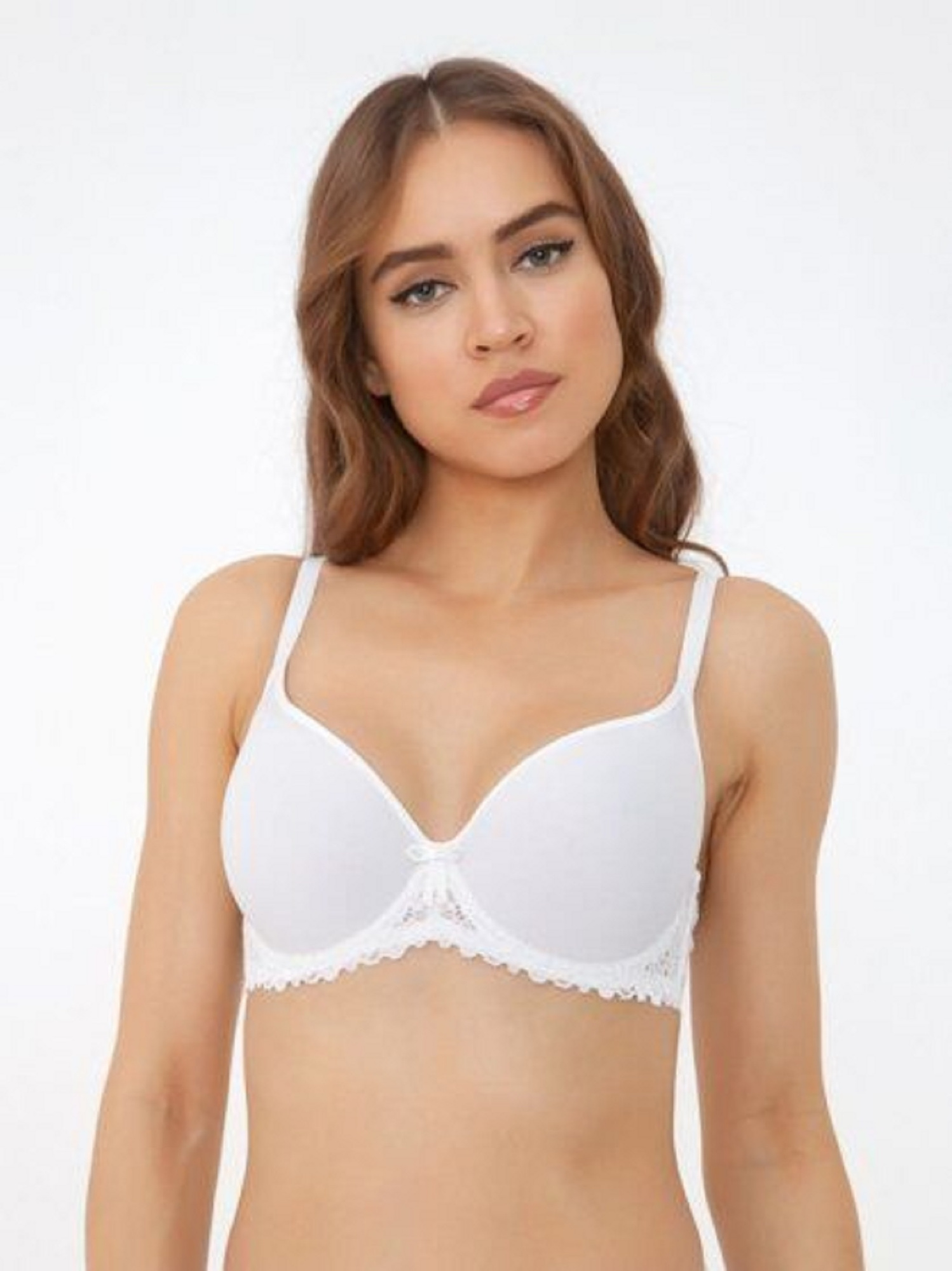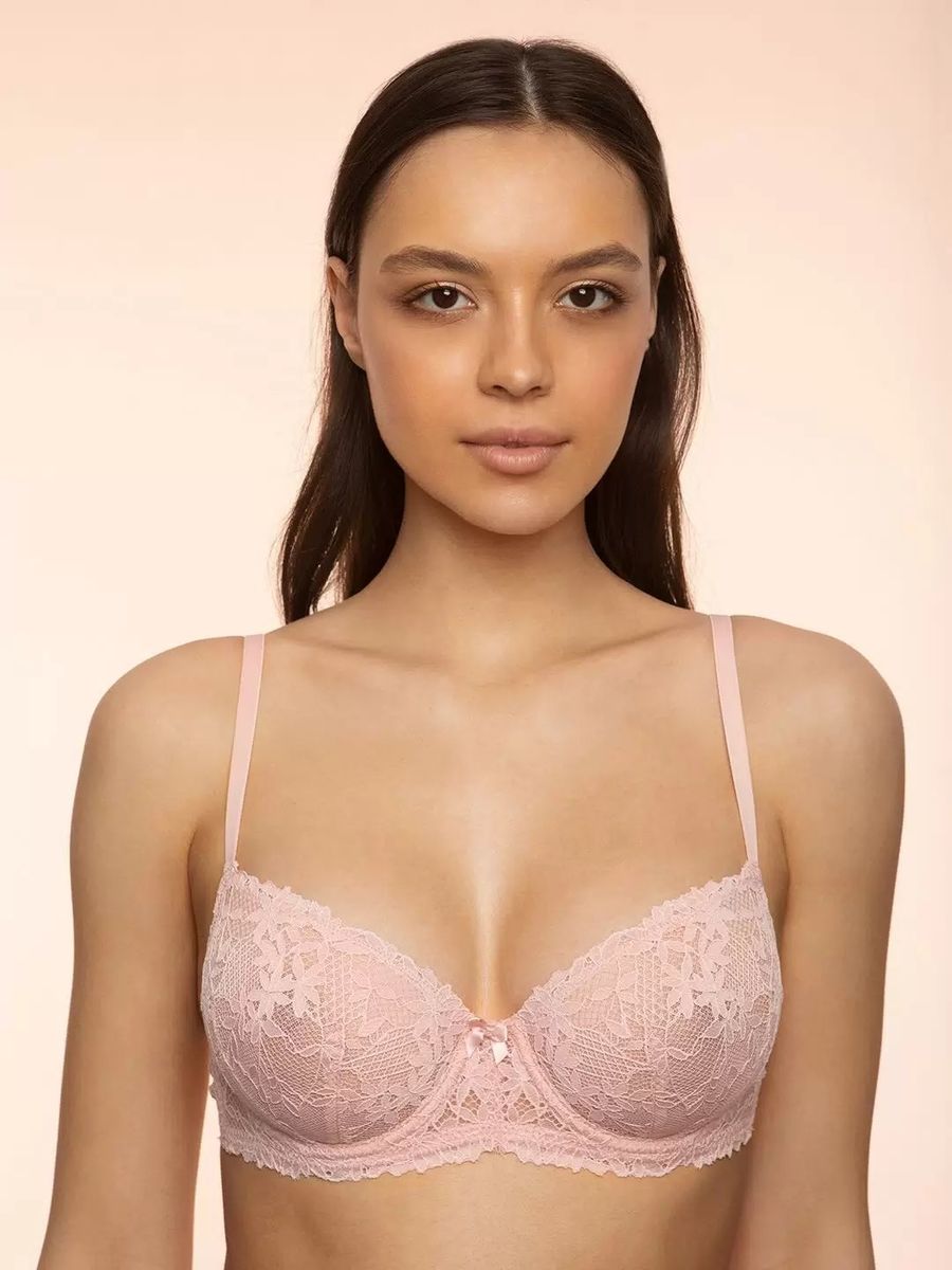Бюстгальтер с формованными чашками от бренда Madamoda. Элегантная комбинация нежного модала с изящной кружевной отделкой по краю чашки. Стильный бантик и «капелька» придают модели еще большую изысканность. Представлена полнота "D" и "E".