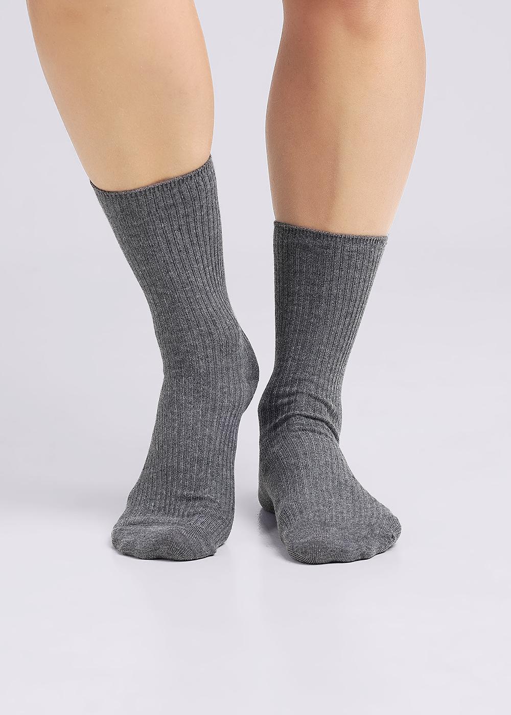 нежные ажурные женские носки с продольными мелкими косами и резинкой пикот