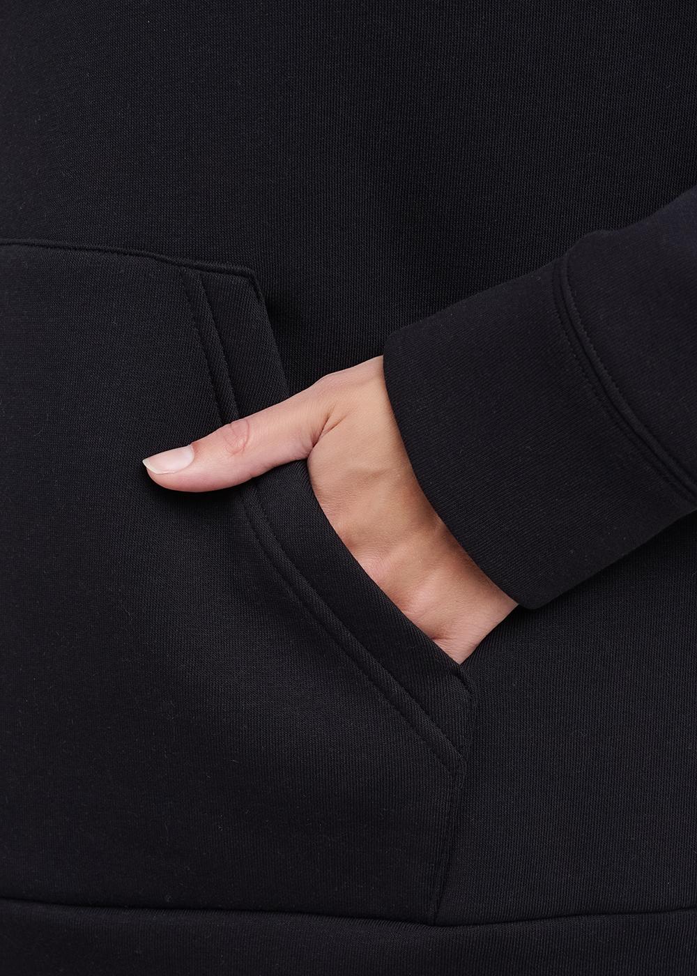 Джемпер с капюшоном для спорта и отдыха из футера 3-х нит. с начесом по изнанке. Спереди карман кенгуру и принт. Длинный рукав со спущенной линией плеча. По низу рукава и изделия манжет.