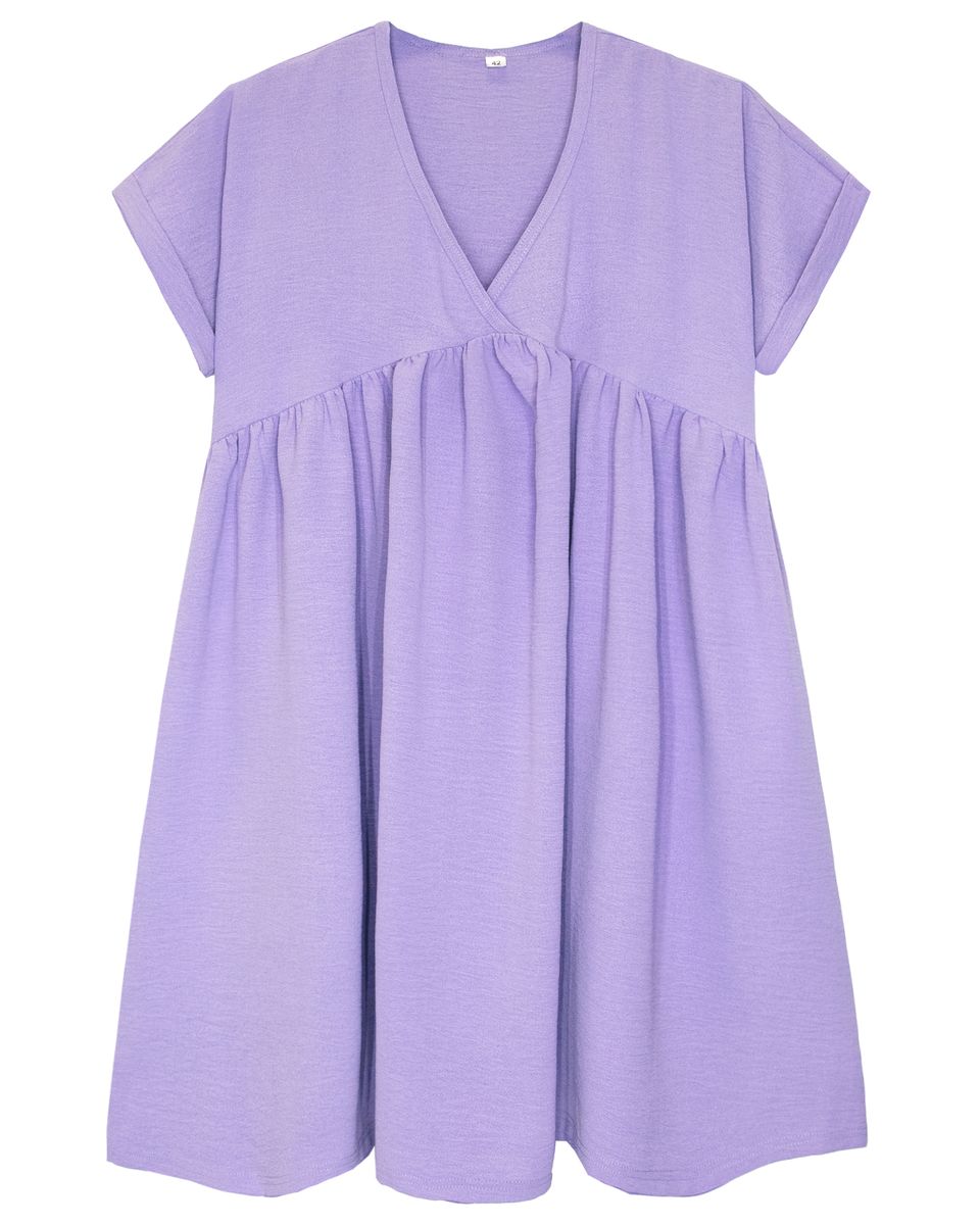 Платье женское, короткое, трапецевидного силуэта, отрезная завышенная линия талии,V-образный вырез горловины глубокий ,обработан окантовкой, рукав короткий цельнокроенный. Модель рассчитана на рост 164-170 см. После стирки возможна усадка изделия.