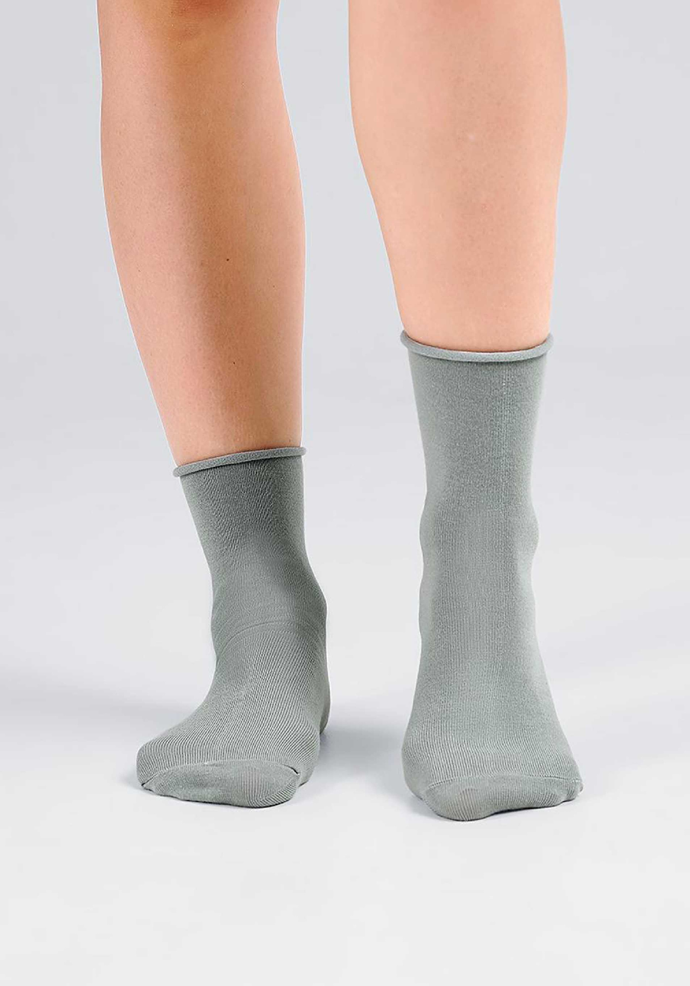 Классические женские носки из бамбука, с бортом, состоящим из двух частей: одинарного и двойного, однотонные.