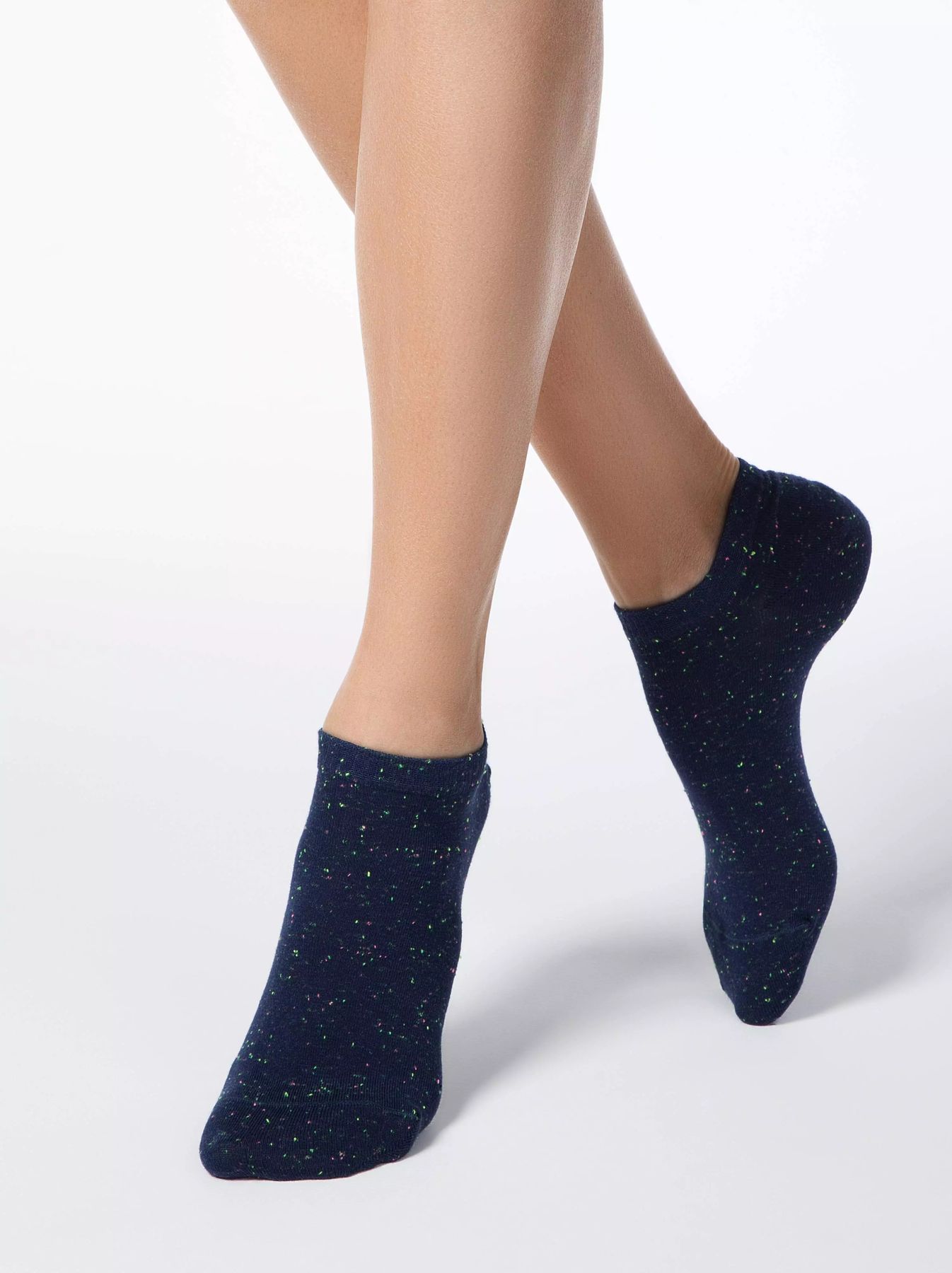Ультракороткие женские носки из хлопка, с ввязанными цветными "пикселями", спортивного назначения.