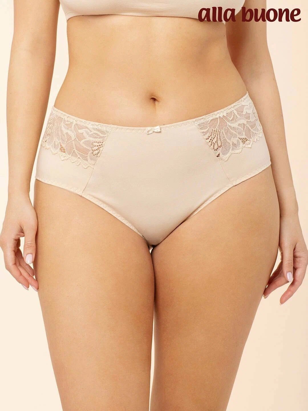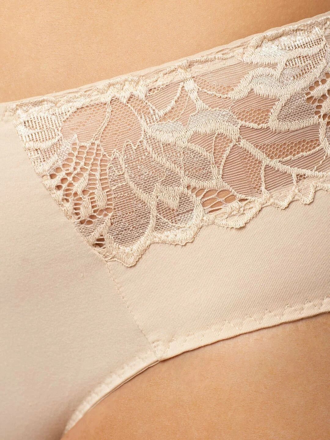 Состав: 60% хлопок, 35% полиамид, 5% эластан. Хлопковые трусы макси средней посадки с кружевом..