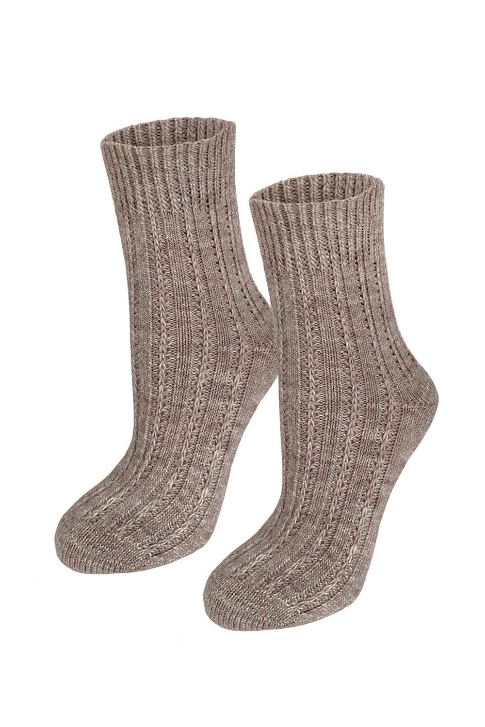 Полушерстяные носки с одинарным бортом и рельефным рисунком.