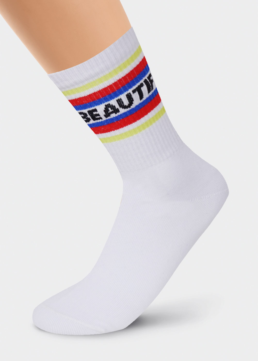 удлиненные молодежные носки с цветными яркими полосками, с надписью "красивая"