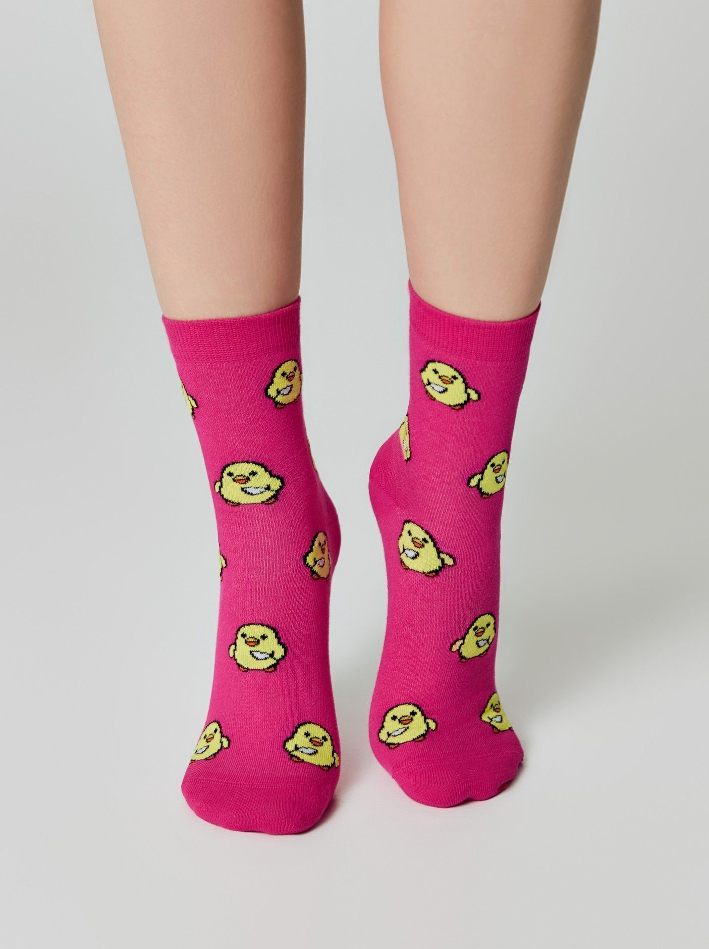 Женские носки из хлопка, с рисунками-мордашками и декоративными элементами на резинке в виде "ушек".