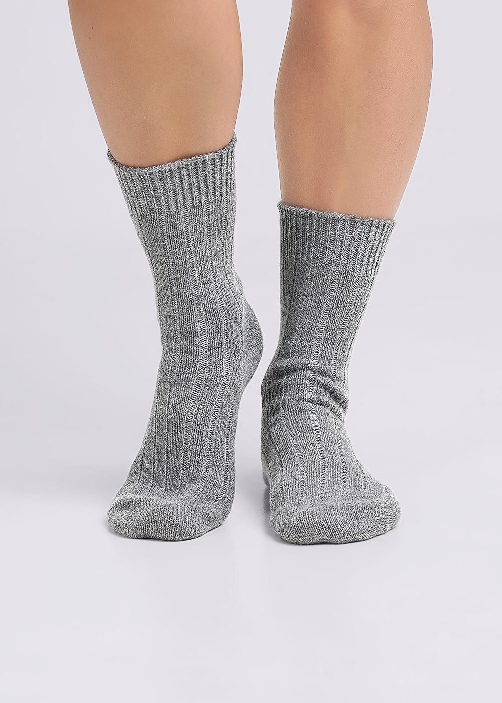 Комфортные теплые женские носки из вискозы (меланж) с ангорой, с бортом, состоящим из двух частей: одинарного и двойного, однотонные.