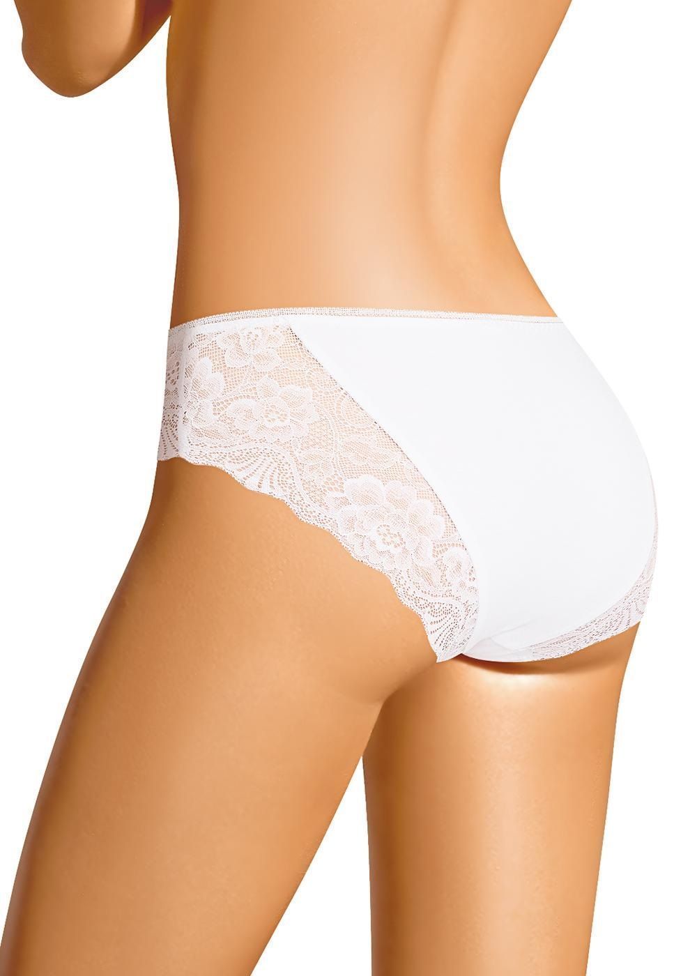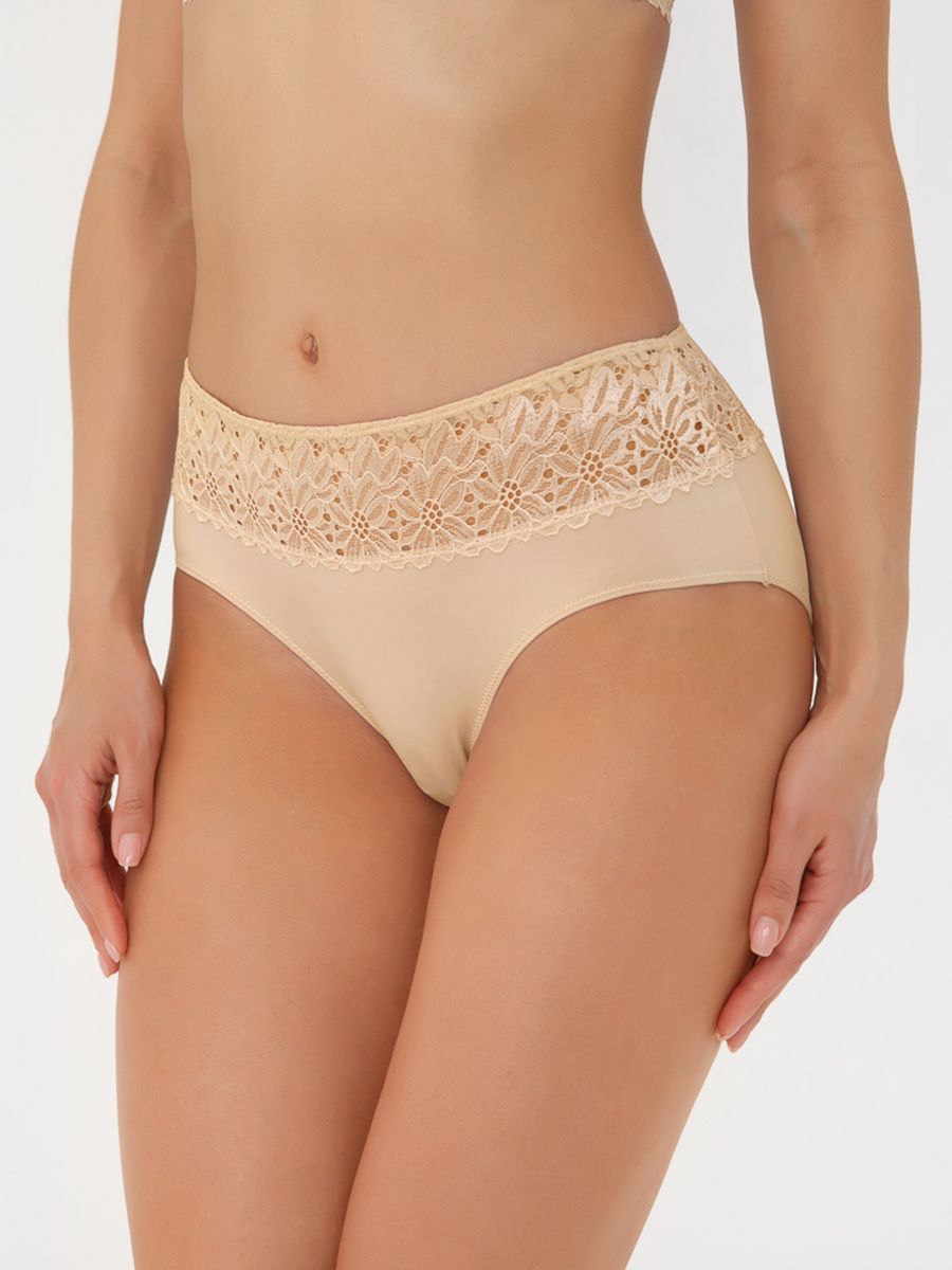 Трусы бикини женские из эластичного хлопкового полотна. По переду рез с кружевными боковыми вставками. Обработка краев по талии ажурная резинка (точечный зигзаг).