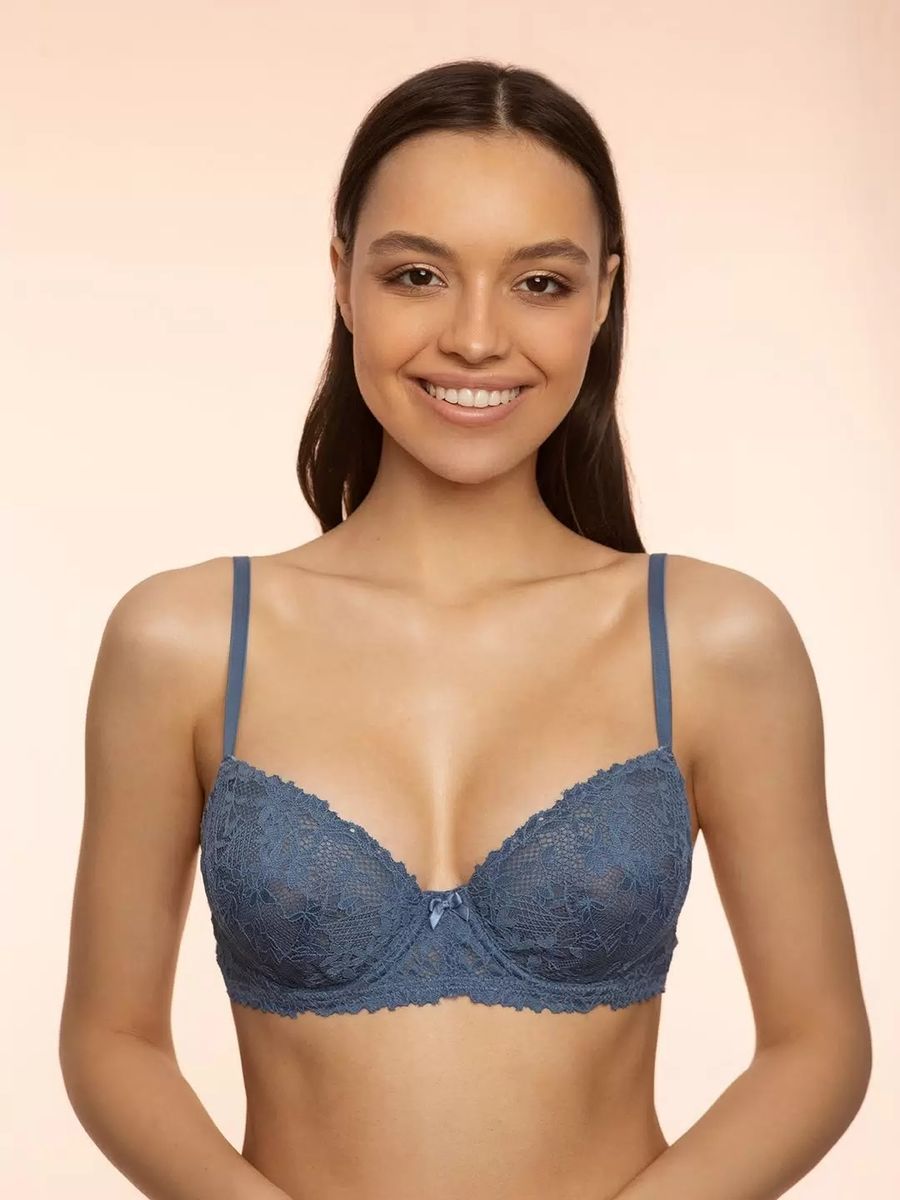 Состав: 90% полиамид, 10% эластан. Кружевной бюстгальтер с мягкими чашками на косточках