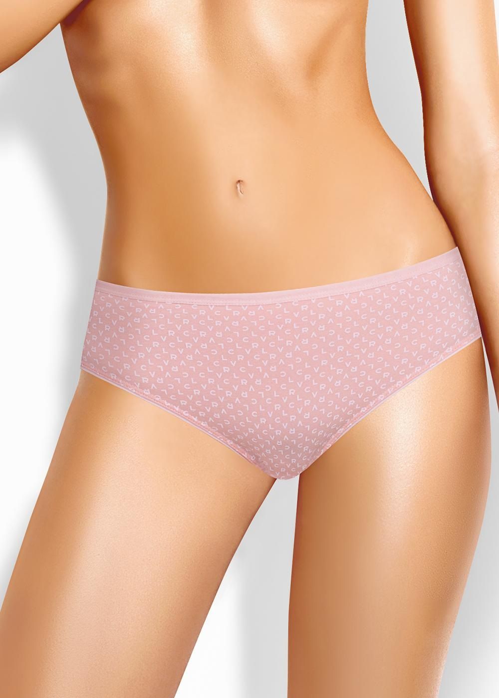 Трусы слипы женские из эластичного хлопкового полотна. Обработка краев по талии - окантовочная резинка с принтом, по ноге - полуокантовка. Спереди принт.