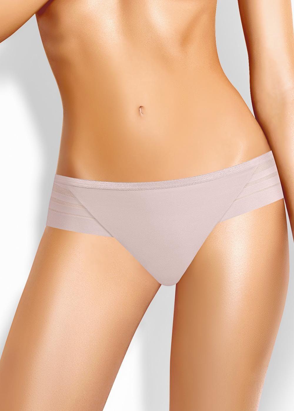 трусы бразилиана на средней посадке из гладкого полиамида и вставками из сетчатого полотна, необработанный край не распускается и незаметен под одеждой