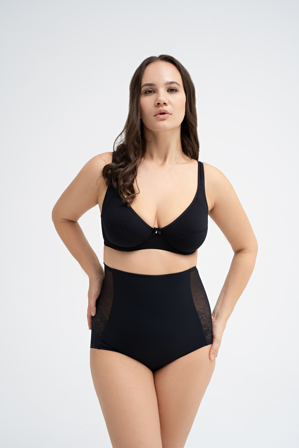 Трусы макси с высокой линией талии выполнены из полиамидного полотна с корректирующим эффектом. В области живота внутренняя дополнительная корректирующая вставка из сетки. Задняя часть изделия выполнена из мягкого стечатого полотна с узором без резинки на ягодицах и боковые швы смещены на перед изделия, что обеспечивает комфорт и незаметно под одеждой. Силиконовая лента в верхней части изделия исключает возможность сползания и скатывания.