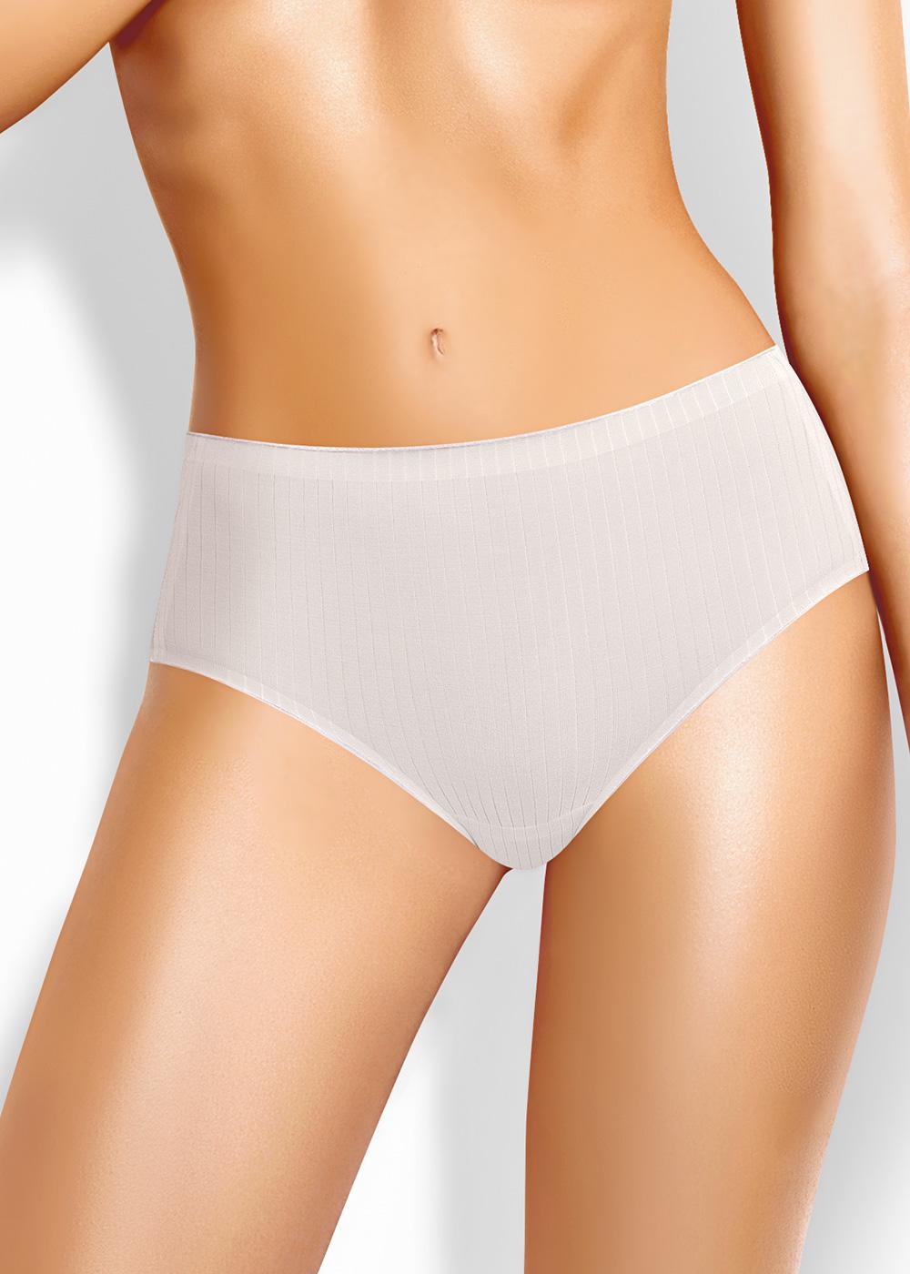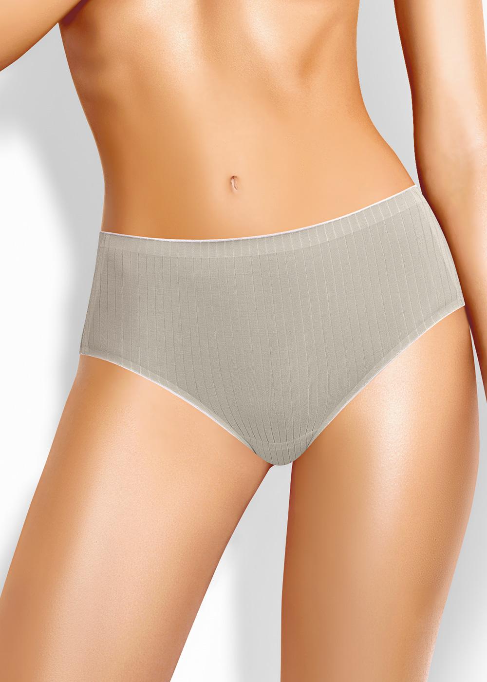 Трусы бикини женские из эластичного полотна с хлопком и модалом в составе. Обработка по талии - фирменная жаккардовая резинка, по ноге - узкая окантовка.