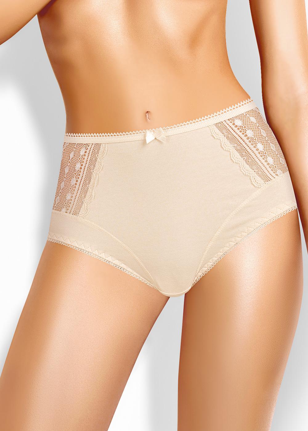 Трусы макси женские из плотного эластичного хлопкового полотна. Обработка краев - ажурная резинка с фестоном. По переду вставки из кружева и бант.
