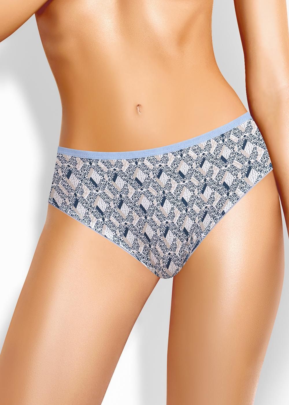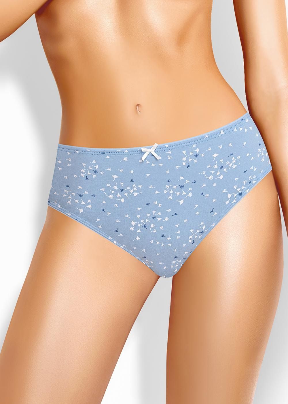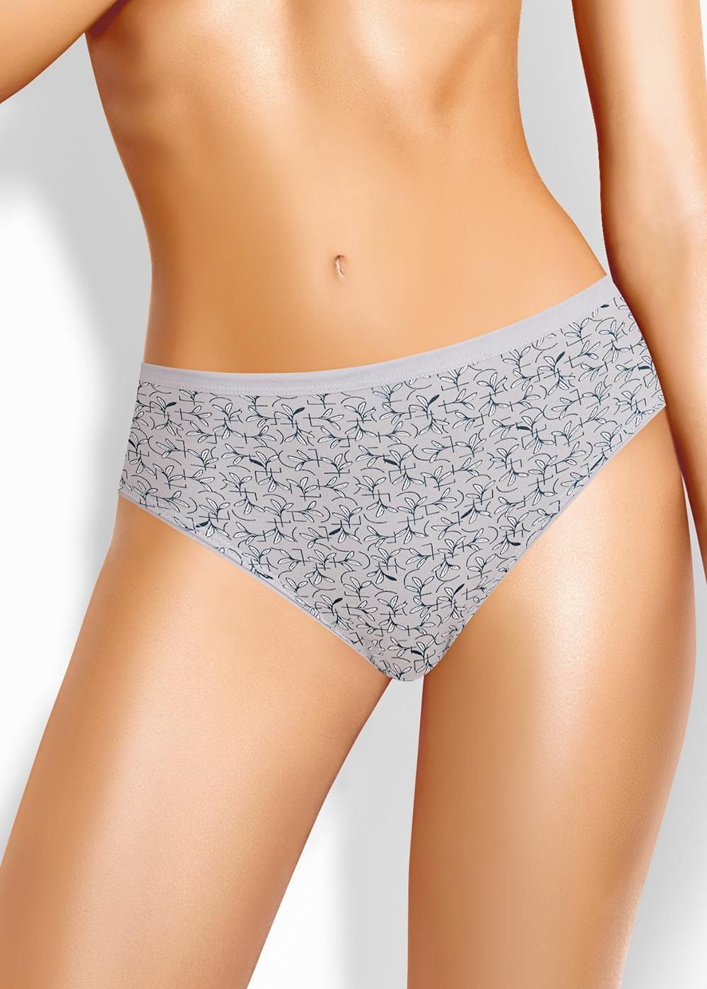 Трусы слипы женские из эластичного хлопкового полотна. Обработка краев по талии - жаккардовая резинка, по ноге - полуокантовка.