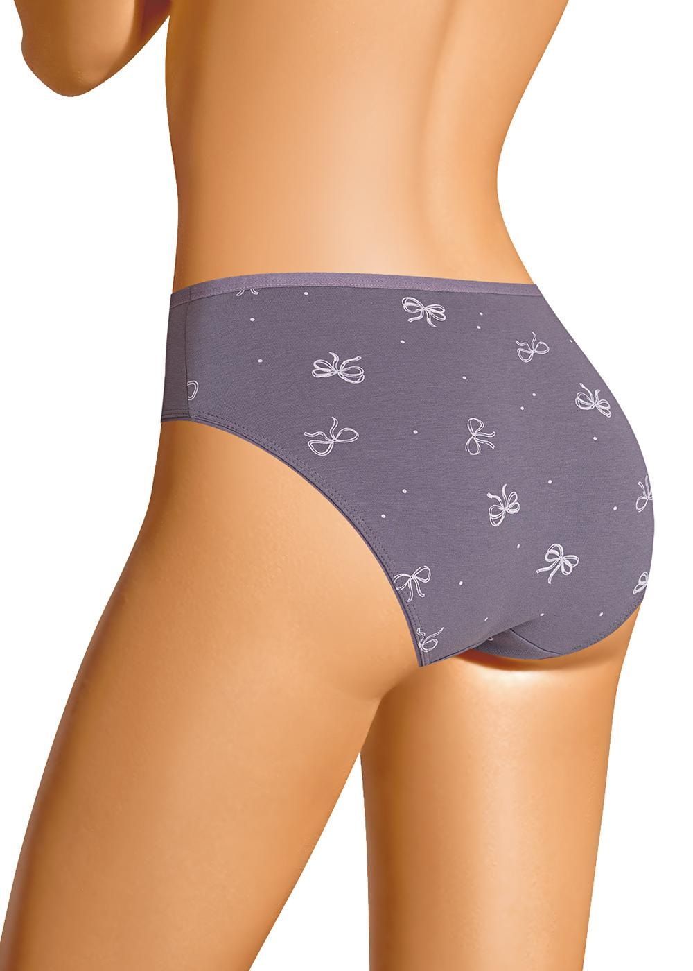 Трусы слипы женские из эластичного хлопкового полотна. Обработка краев по талии - окантовочная резинка, по ноге - полуокантовка. По переду атласный бант.