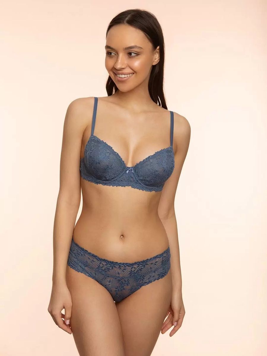 Трусы бразилиана женские из эластичного хлопкового полотна. Обработка краев по талии - ажурная резинка, по ноге - подгибка. По переду атласный бант.