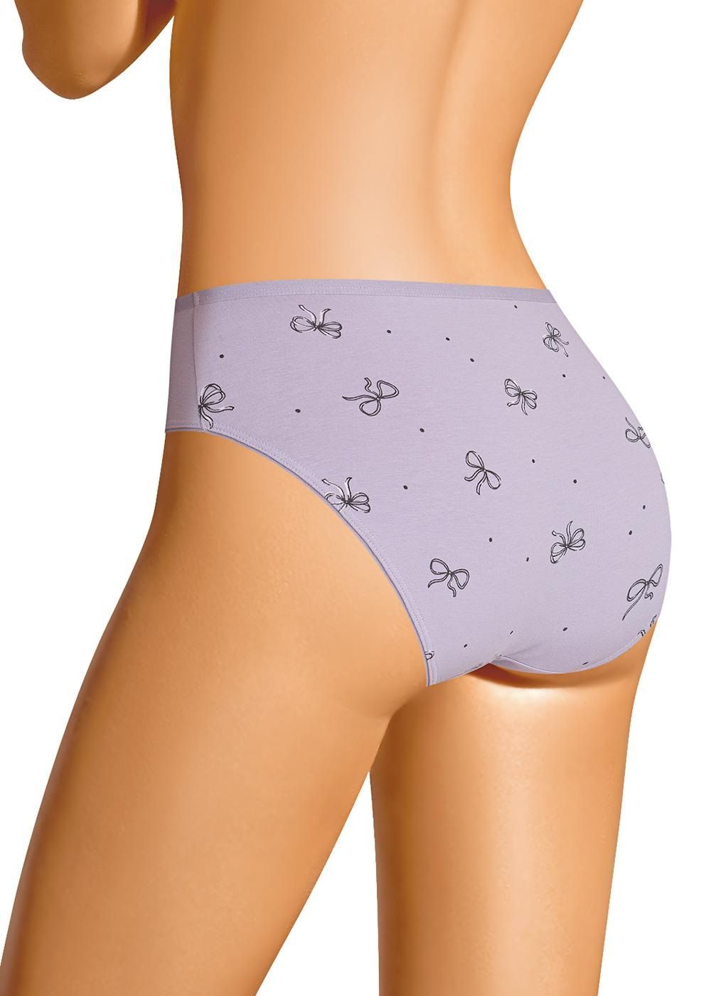 Трусы слипы женские из эластичного хлопкового полотна. Обработка краев по талии - ажурная резинка, по ноге - полуокантовка. По переду атласный бант.