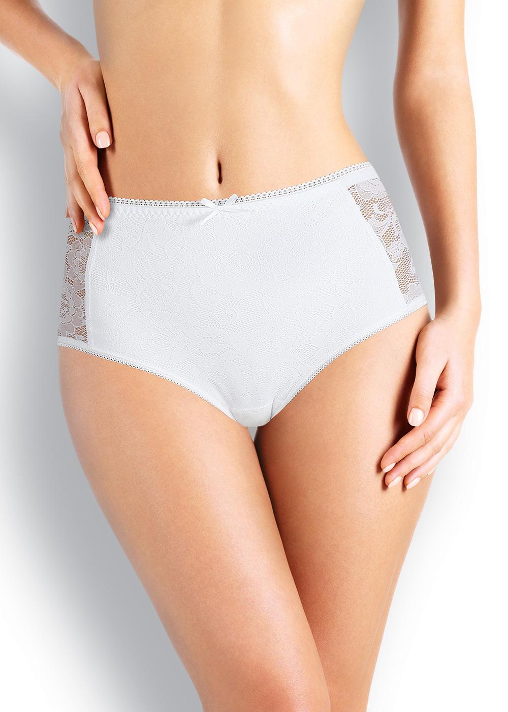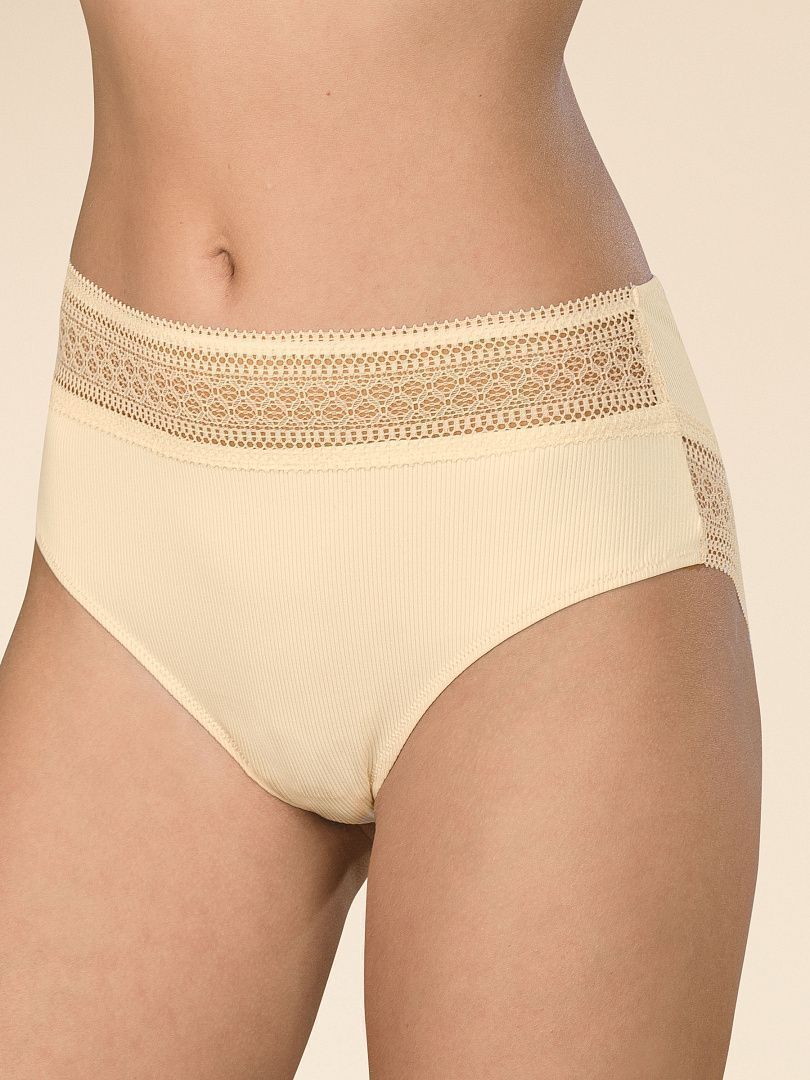 Трусы бикини женские из полиамида с эластаном. Обработка краев по талии - ажурная широкая резинка, по ноге - подклееный край. Хлопковая ластовица.