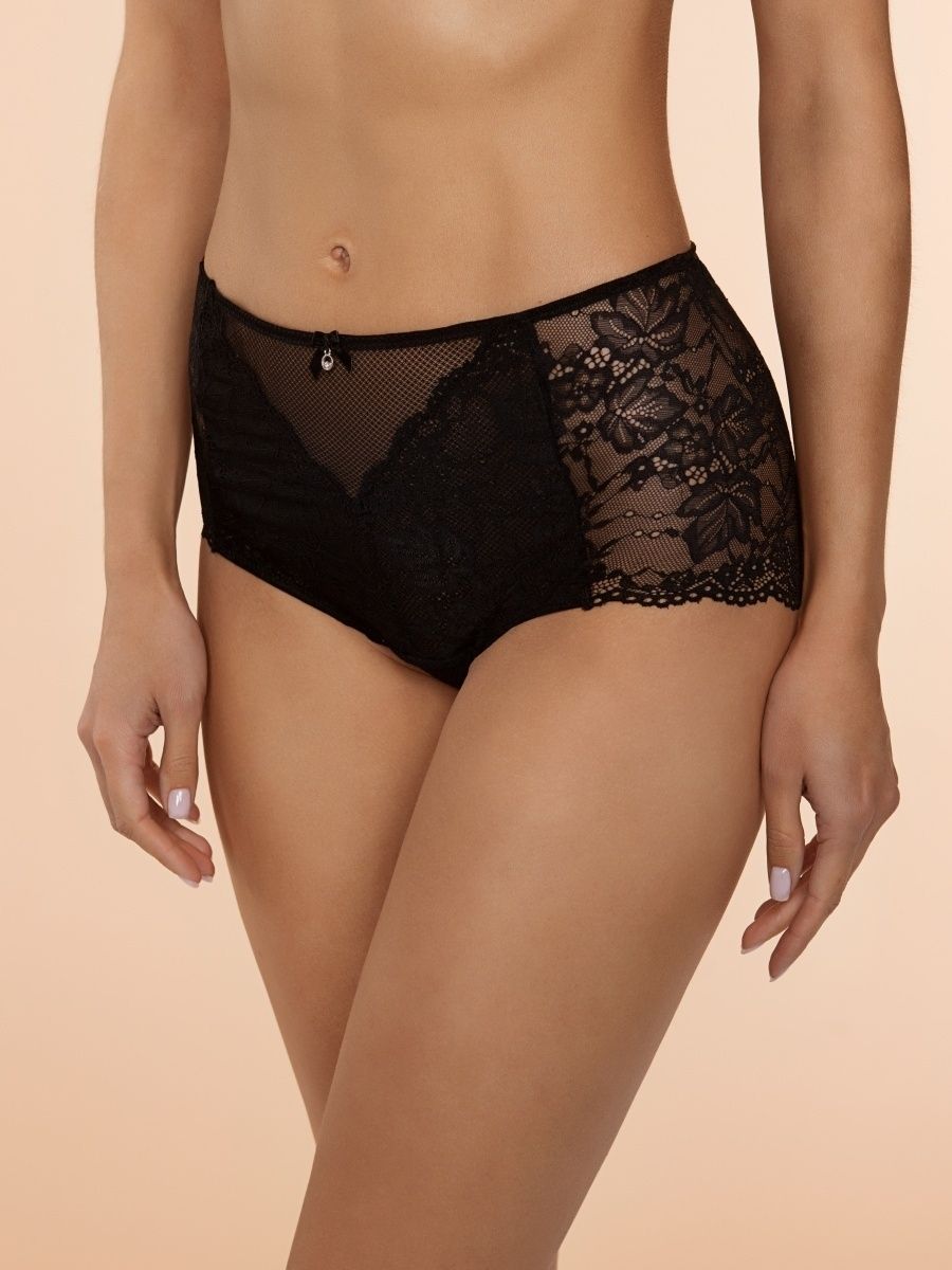Состав: 80% полиамид, 20% эластан. Кружевные трусы слипы высокой посадки.