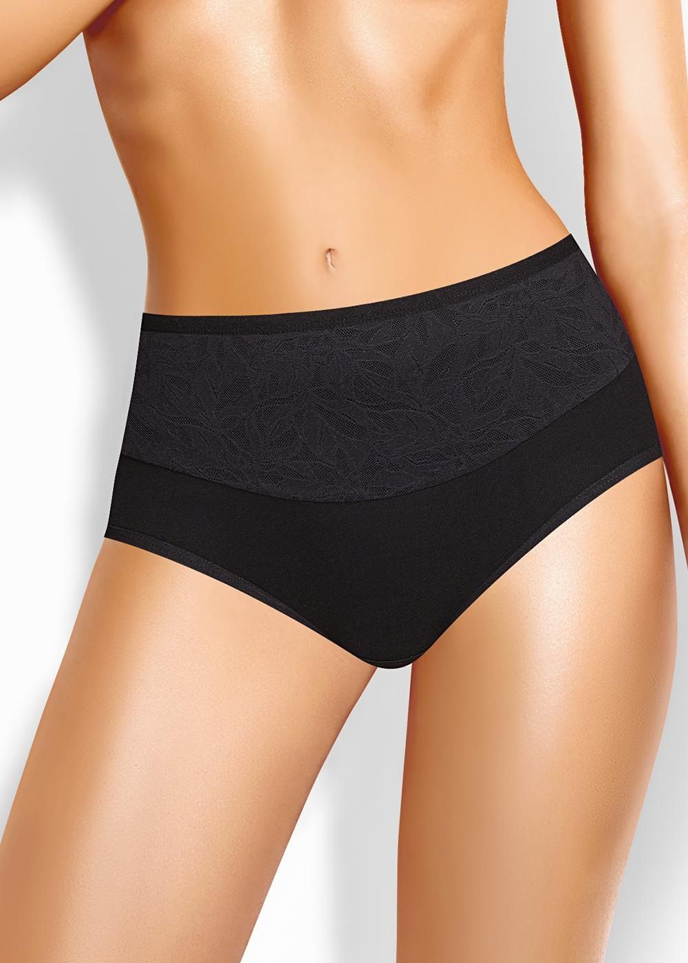 Трусы макси утяжка женские из эластичного хлопкового полотна. По переду переду рез с кружевной вставкой. Обработка краев по талии и ноге окантовочная резинка.