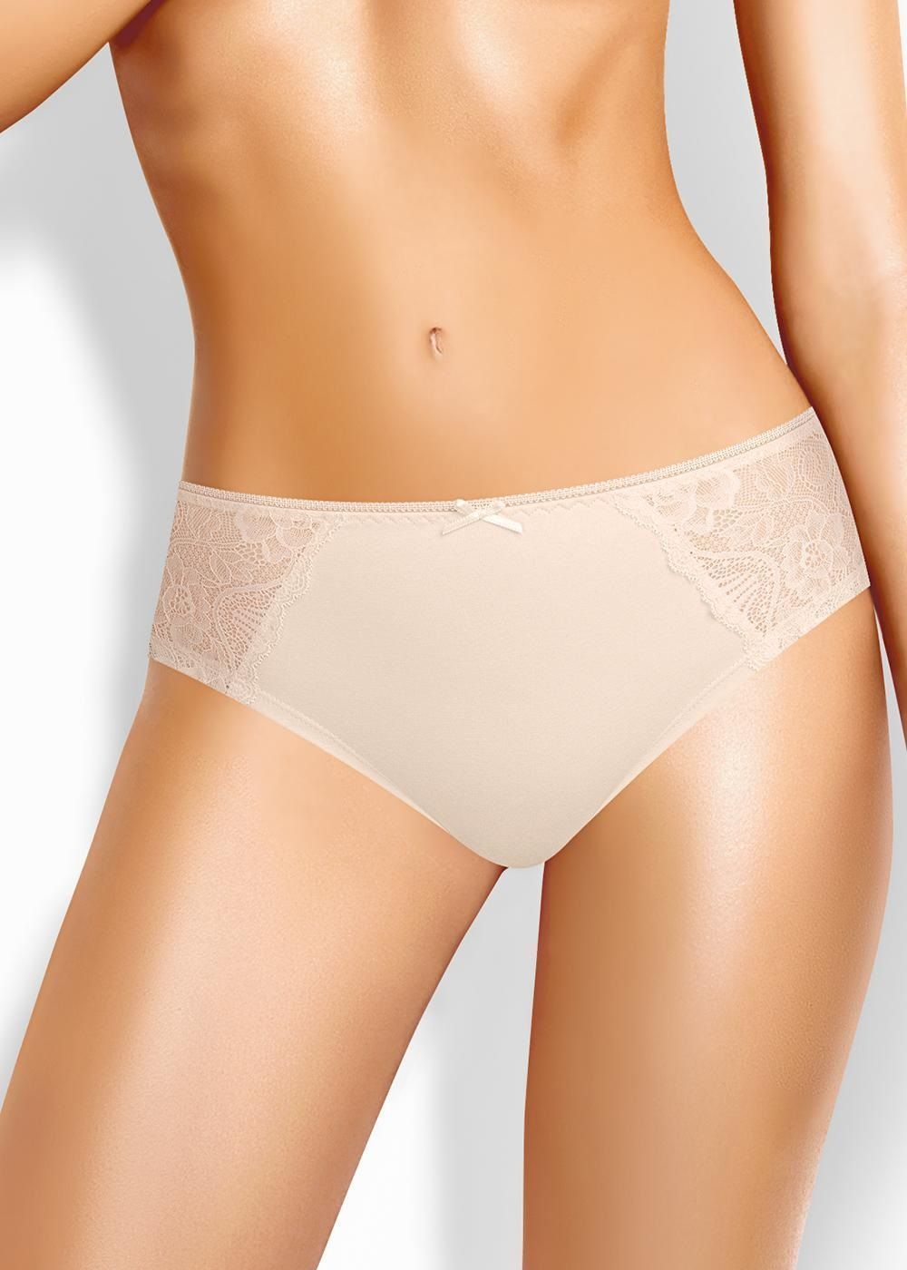 Трусы бикини женские из полиамида с эластаном. Обработка краев по талии - ажурная широкая резинка, по ноге - подклееный край. Хлопковая ластовица.