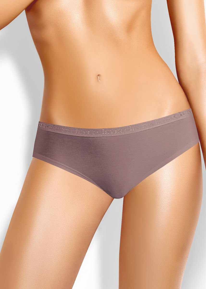 Трусы бразилиано женские из эластичного полотна с хлопком и модалом в составе. Двойная спинка со средним швом. Обработка по талии - фирменная жаккардовая резинка, по ноге спереди - подгибка.