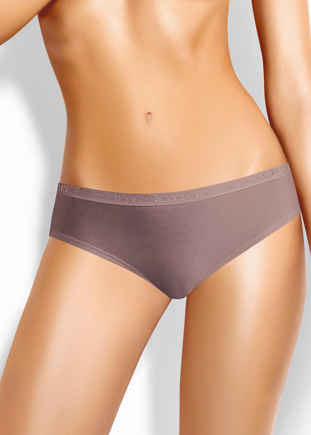 Трусы бразилиано женские из эластичного полотна с хлопком и модалом в составе. Обработка по талии - фирменная жаккардовая резинка, по ноге - подгибка.