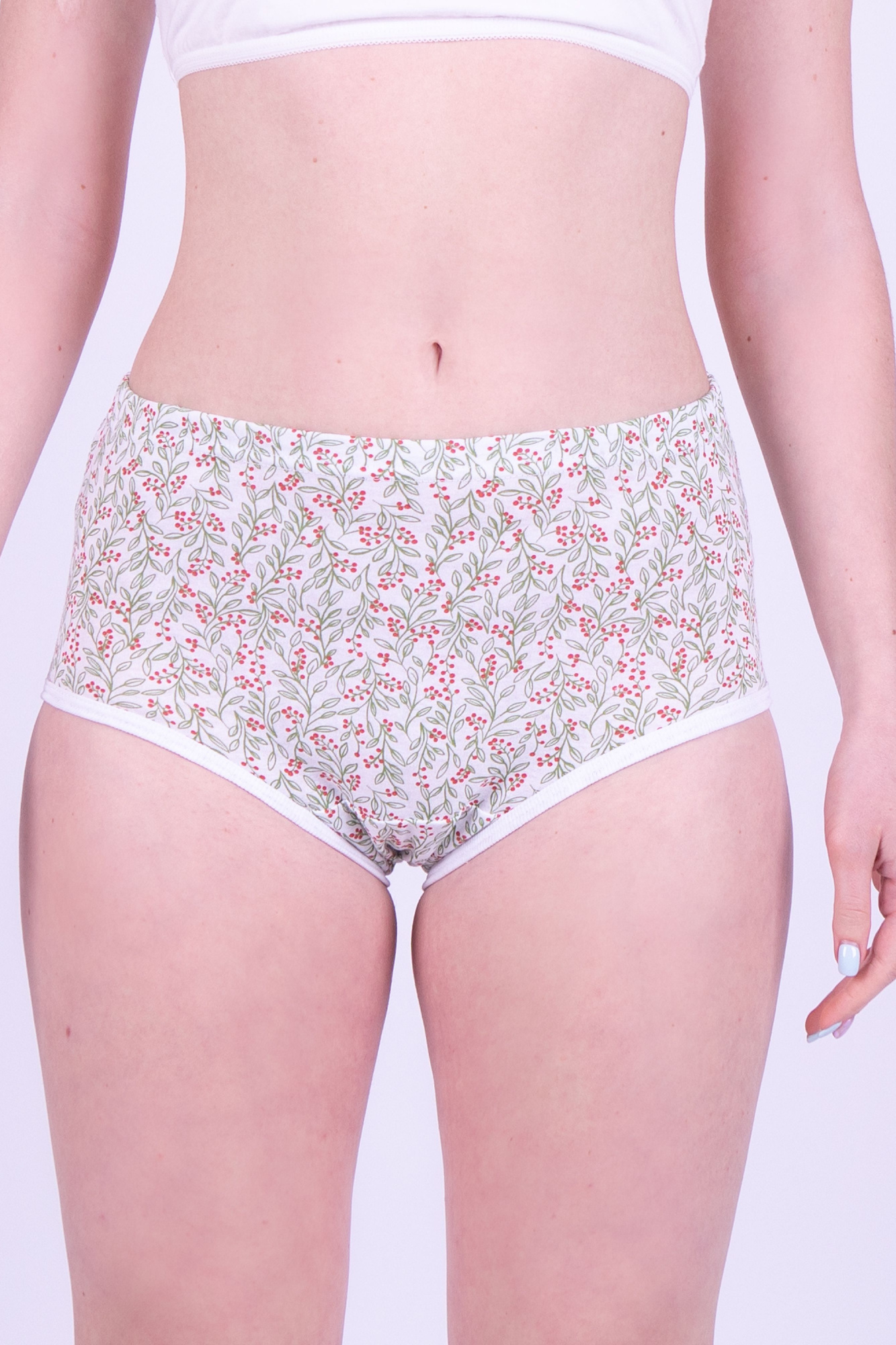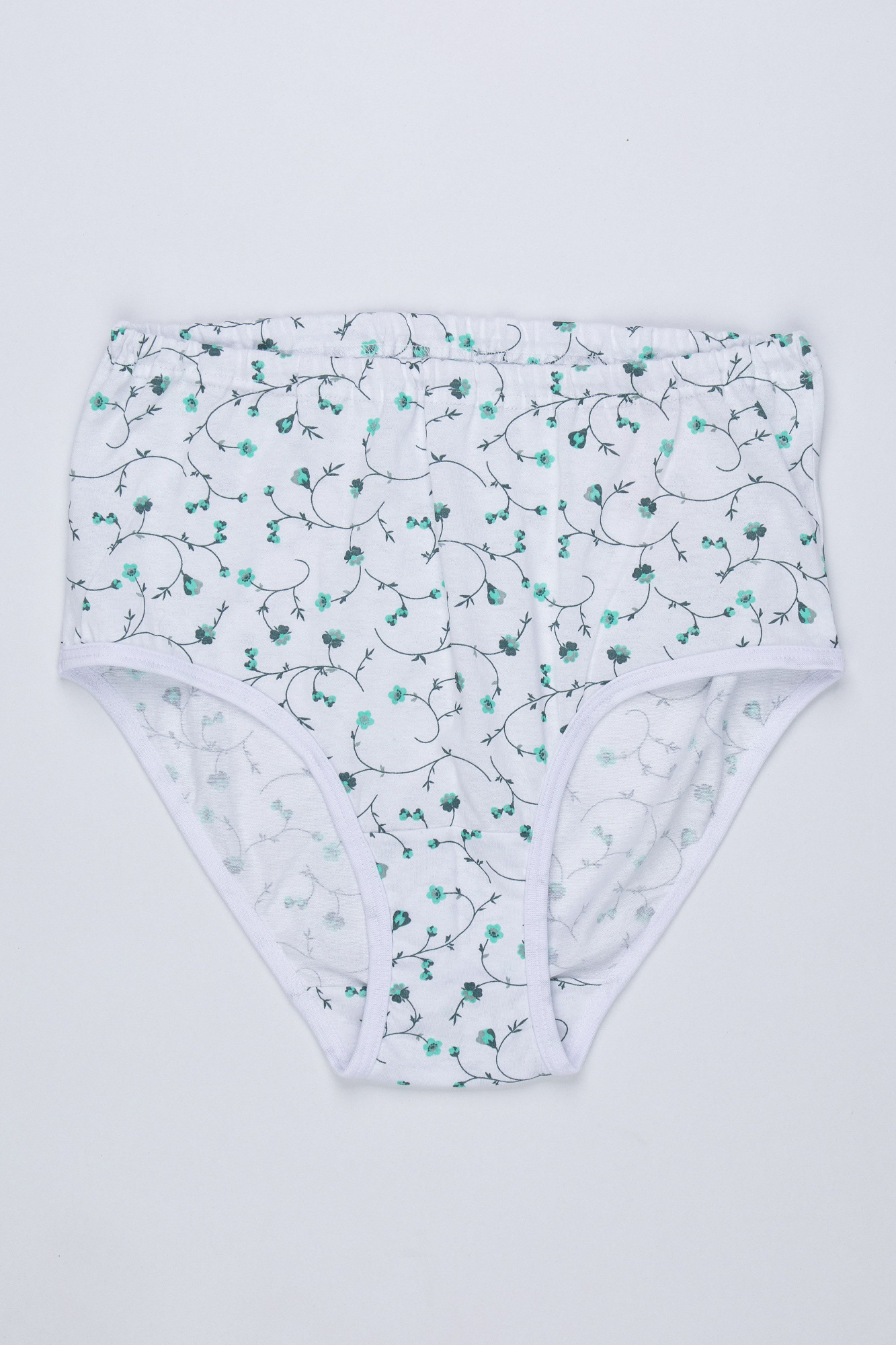 Трусы слипы женские из эластичного хлопкового полотна. Обработка краев по талии резинка с принтом, по ноге - полуокантовка.