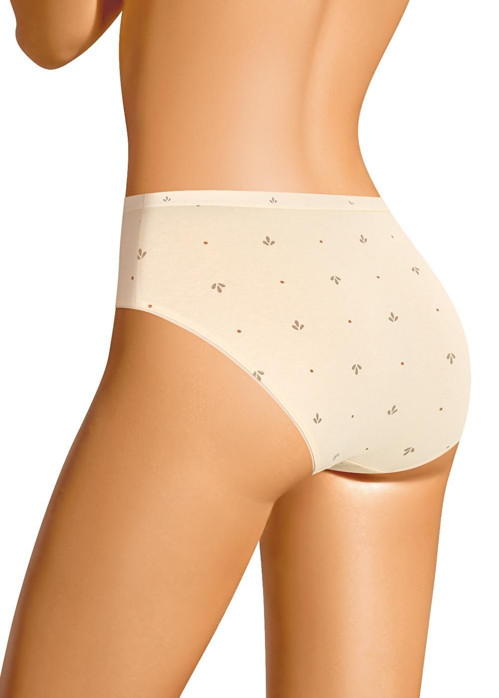 Трусы слипы женские из эластичного хлопкового полотна. Обработка краев по талии резинка с принтом, по ноге - полуокантовка.