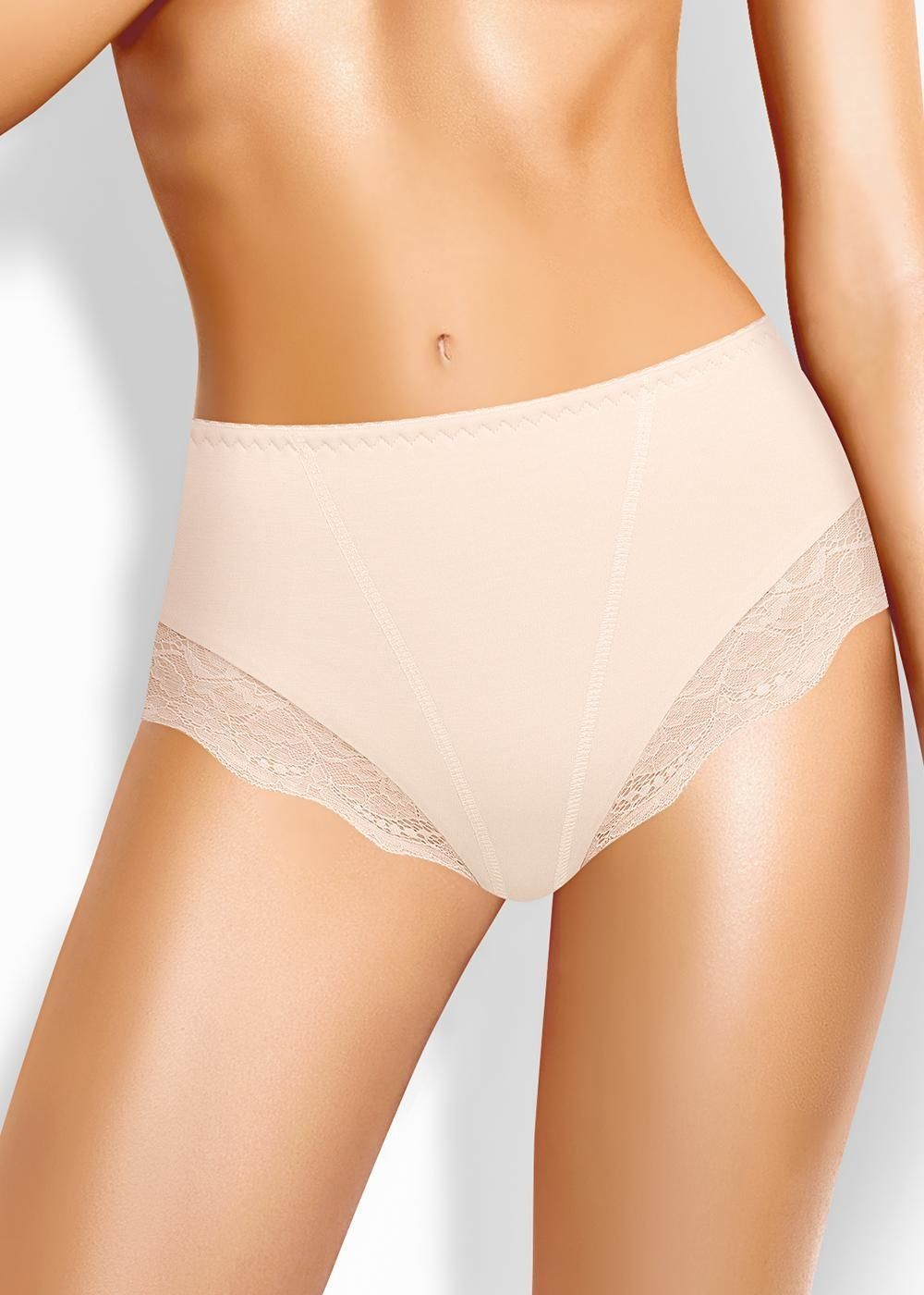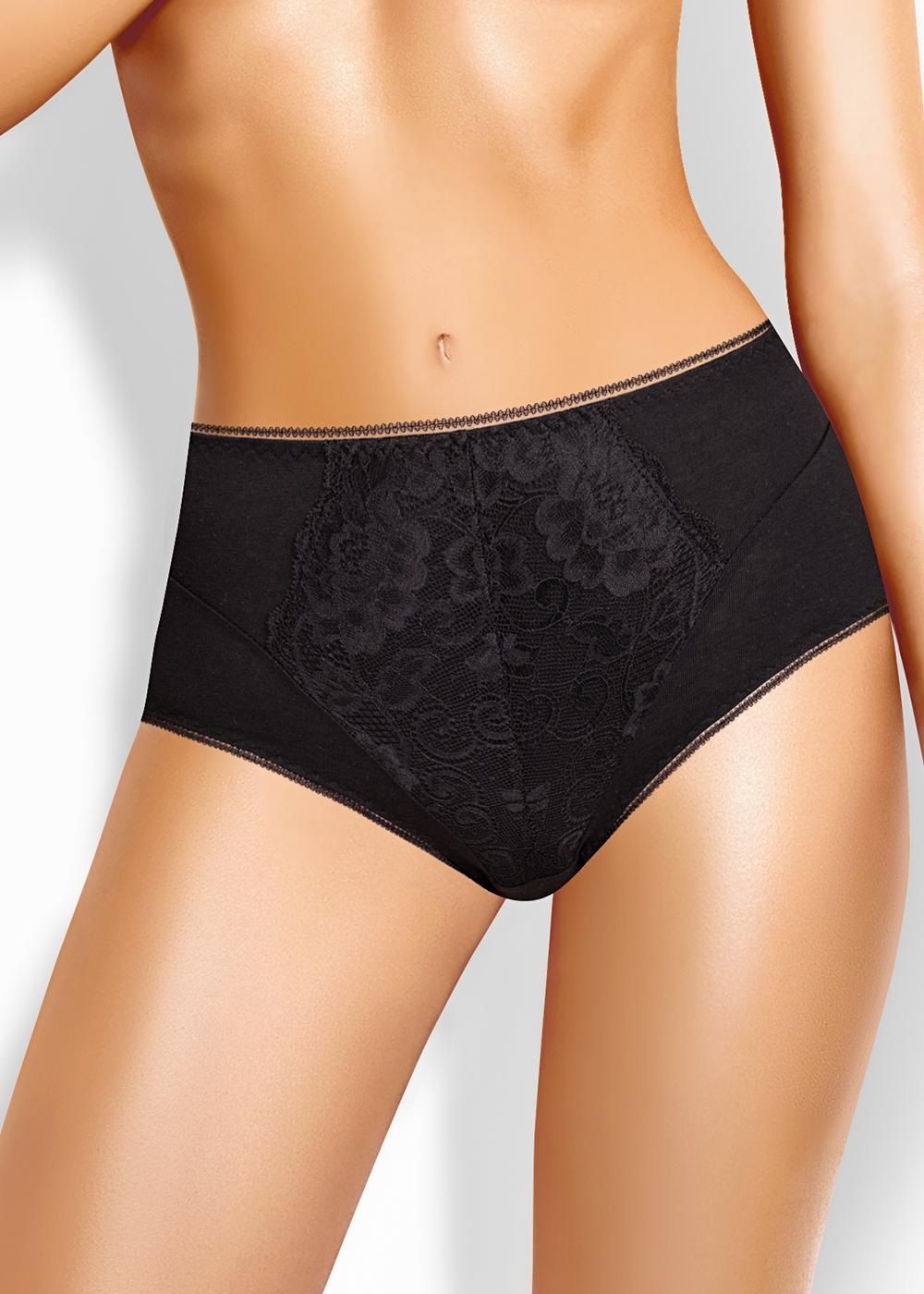 Трусы макси утяжка женские из эластичного хлопкового полотна. По переду средний шов с кружевными вставками. Обработка краев по талии и ноге ажурная резинка (точечный зигзаг).