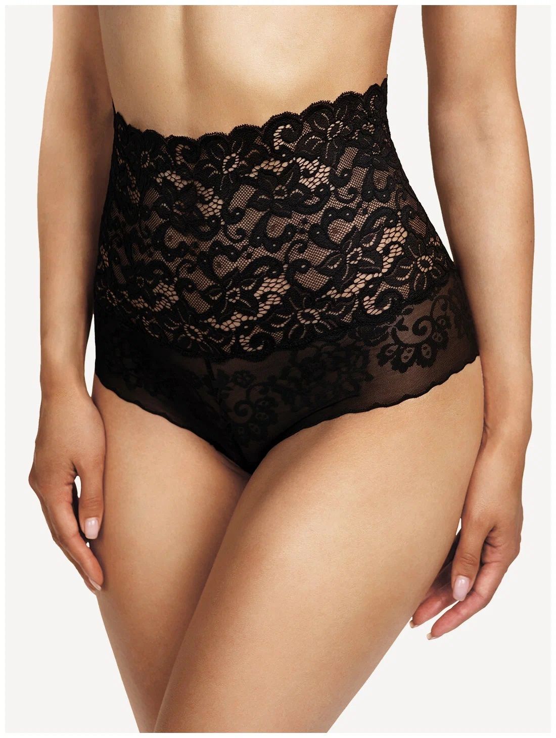 Состав: 72% полиамид, 16% эластан, 12% полиэстер. Трусы слипы высокой посадки из микрофибры с кружевом.