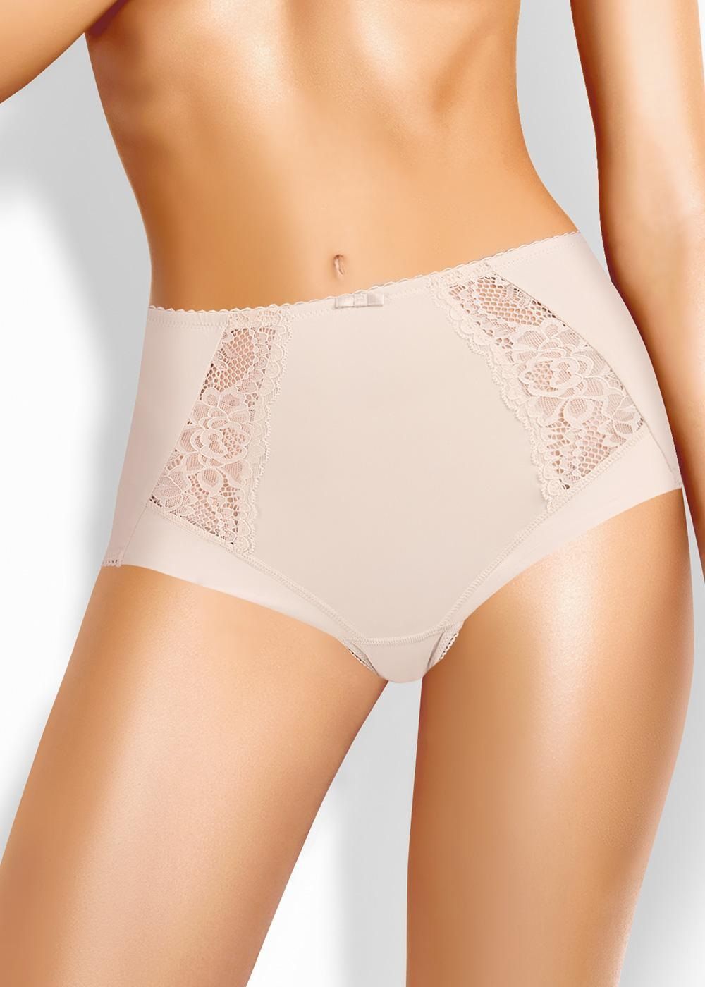 Трусы-макси женские из полиамида. Обработка краев - резинка с фестоном. По переду вставки из кружева и бант. Производство Китай.