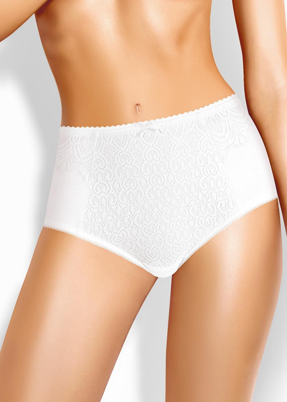 Трусы макси женские из плотного эластичного хлопкового полотна. Обработка краев - ажурная резинка с фестоном. По переду вставки из кружева и бант.
