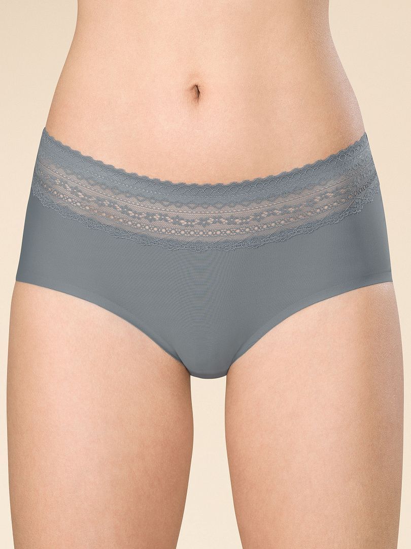 Состав: 80% полиамид, 20% эластан. Кружевные трусы слипы высокой посадки.