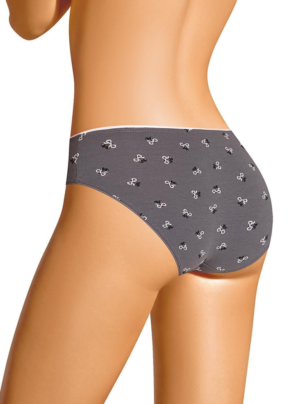 Трусы слипы женские из эластичного хлопкового полотна. Обработка краев по талии жаккардовая резинка, по ноге - полуокантовка. По переду и спинке- вставки из сетки, швы застилом.