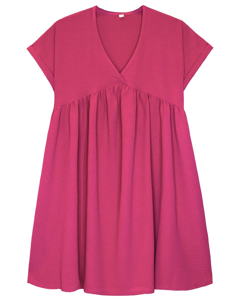 Платье женское, короткое, трапецевидного силуэта, отрезная завышенная линия талии,V-образный вырез горловины глубокий ,обработан окантовкой, рукав короткий цельнокроенный. Модель рассчитана на рост 164-170 см. После стирки возможна усадка изделия.
