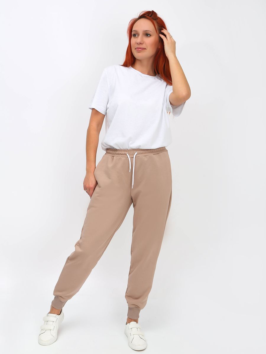 Брюки женские из футера 3-х нитки. На поясе и по низу брюк эластичная резинка, в боковых швах карманы. Подходят для холодной погоды. Брюки с манжетами из рибаны в цвет основного полотна
