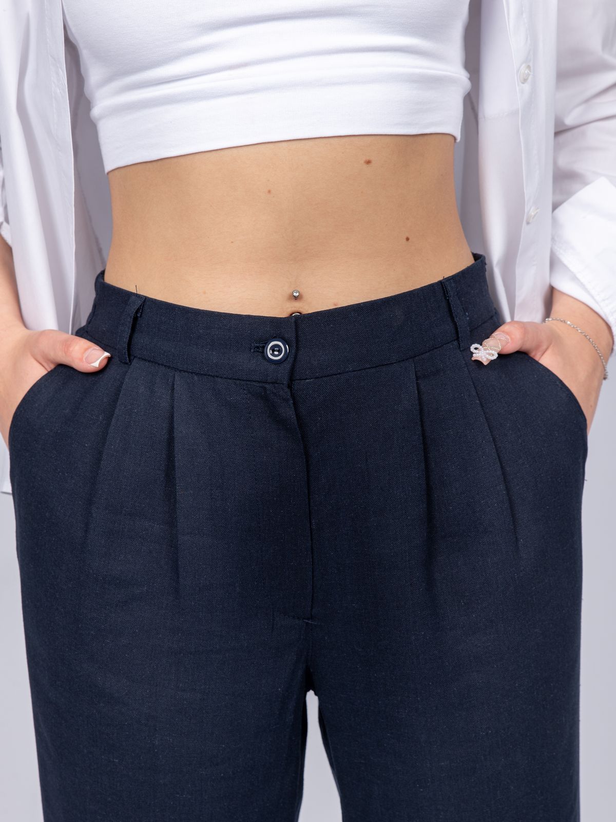 Повседневные вискозные брюки идеально дополнят базовый гардероб любой девушки. Благодаря вискозе ткань красиво струится, образуя мягкие складки, драпировки Свободный силуэт и комфортная посадка делают эти брюки незаменимым атрибутов любого образа: на каждый день, на работу или на прогулку. Пояс на резинке. На передней половинке брюк гульфик с замком, карманы, односторонние складки по линии талии. На спинке вытачки предназначены для создания облегания в области талии. Длина 7/8, по низу изделия манжет. Средняя высота посадки. Изготовлены из облегченного вискозного полотна с добавлением льняных нитей . Модель рассчитана на рост 164-170.