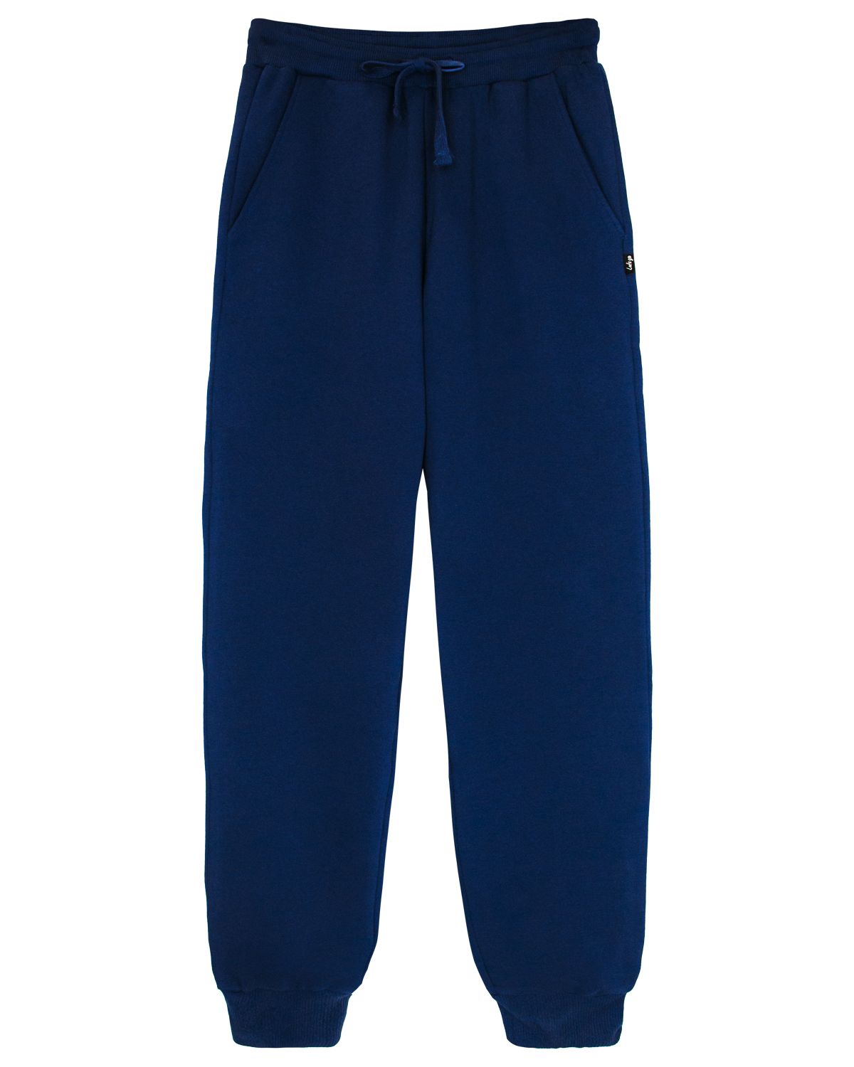 Брюки – длинные, на притачном поясе с эластичной тесьмой внутри и манжетами по низу. Передние половины – из двух частей каждая, со смещением соединительных швов в сторону боковых срезов. Соединительные швы передних половин с карманами. Пояс и манжеты выполнены из трикотажного полотна «кашкорсе».