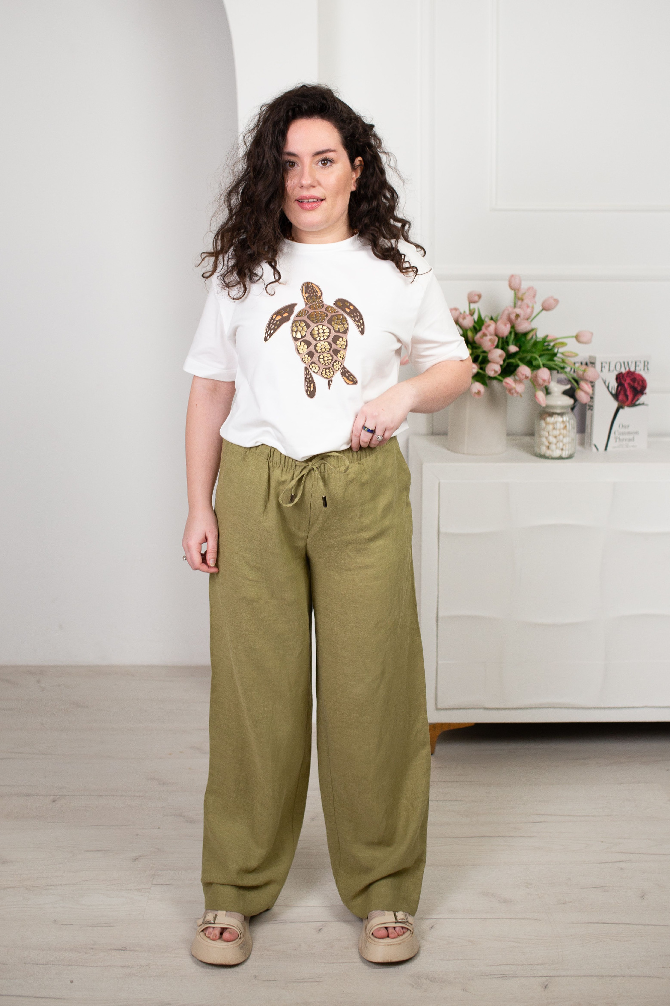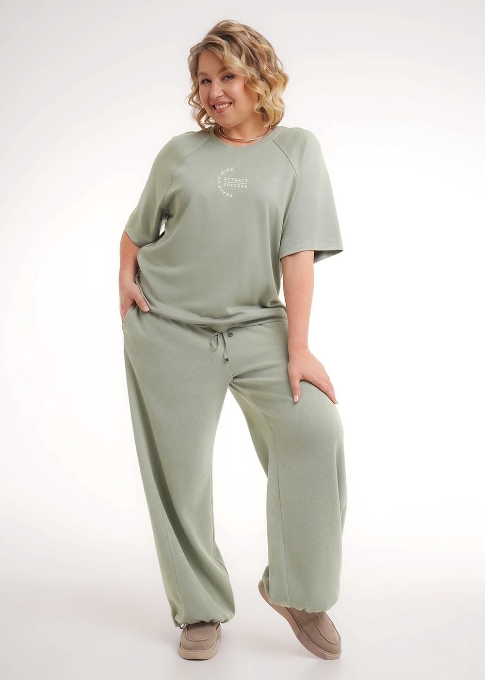 Укороченная модель брюк выполнена из мягкоготрикотажа. Пояс на резинке с завышенной линией талии, боковые карманы. По низу изделия декоративные пуговицы. Модель идеально подойдет для любого образа - от классического до спортивного. Брюки для теплого весеннего сезона и летней погоды.