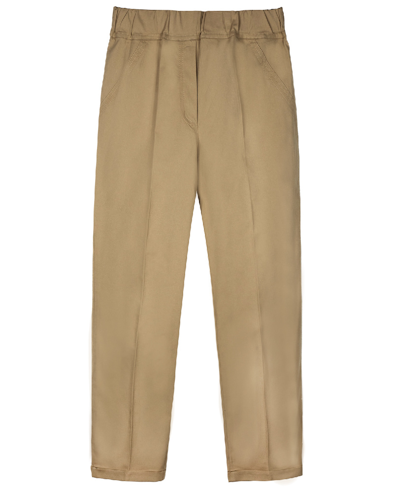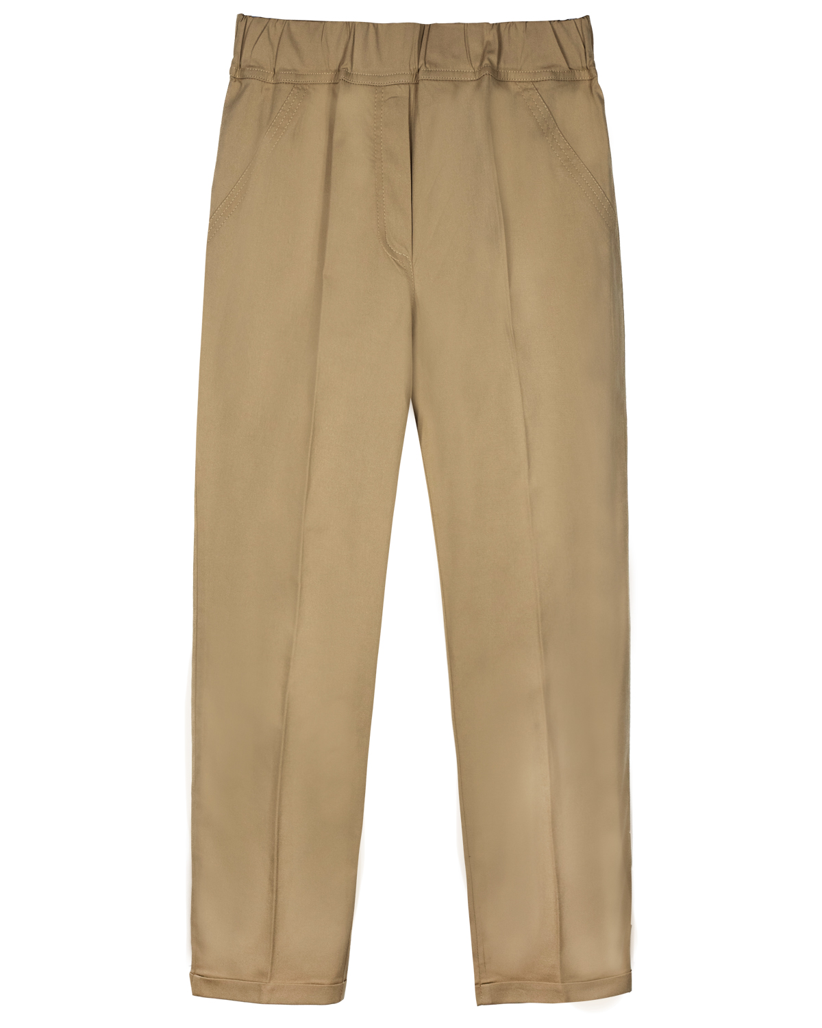Повседневные хлопковые брюки идеально дополнят базовый гардероб любой девушки. Свободный силуэт и комфортная посадка делают эти брюки незаменимым атрибутов любого образа: на каждый день, на работу или на прогулку. Пояс на резинке, имитация гульфика, карманы спереди. На спинке отрезная кокетка, имитация карманов с листочкой, заутюженные стрелки. Длина 7/8, 70 см по шаговому шву, по низу манжет. Средняя высота посадки. Изготовлены из облегченного джинсового полотна. Модель рассчитана на рост 164-170.